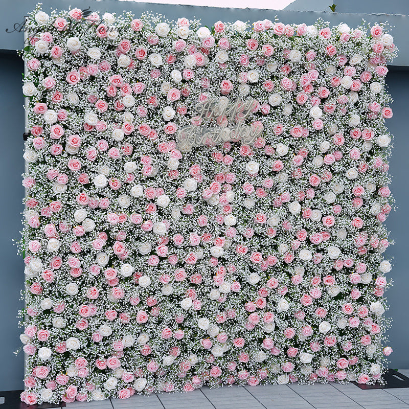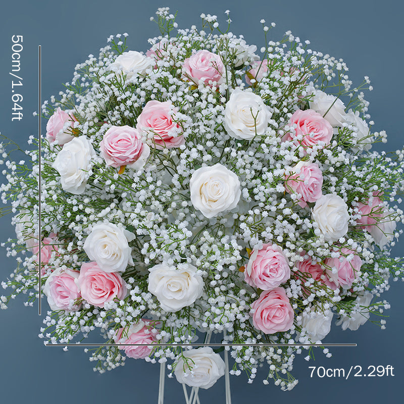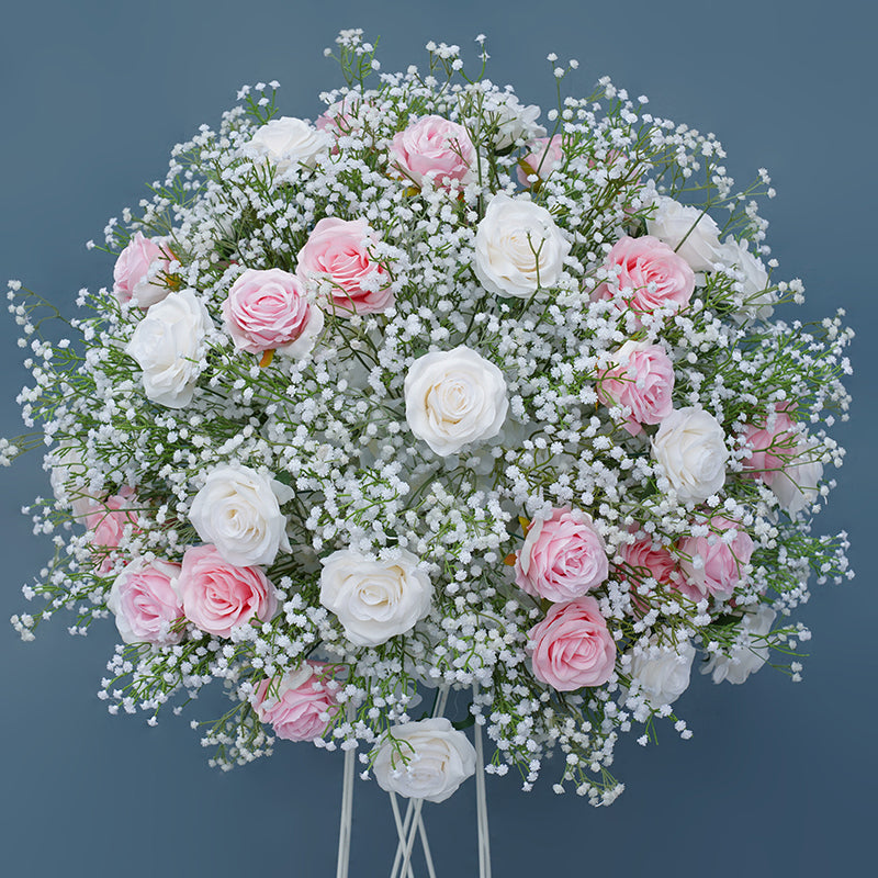 Angela Lore White Pink Orifi Arrosa Babysbreath Serieko Ezkon Floral Konposizioa Ehunezko Lore Hormako Zentroak Bola A7761