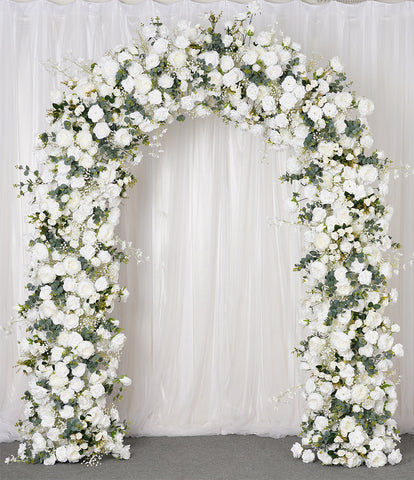 Angela Flower Luxuzko Arrosa Zuria Babysbreath Eukalipto Berdeko Hostoa Loreen Errenkada Ezkontza Arku Dekorazioa Lore Konposizioa Dekorazio Markoa Ekitaldi Prop A7791