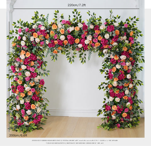 Angela Lore Hot Pink Laranja Arrosa Berde Hostoak Antolaketa Lorezko Kanpoko Eztei Atzeko Plana Lore Arku Markoa Dekorazioa Ekitaldi Festaren Propak A8230