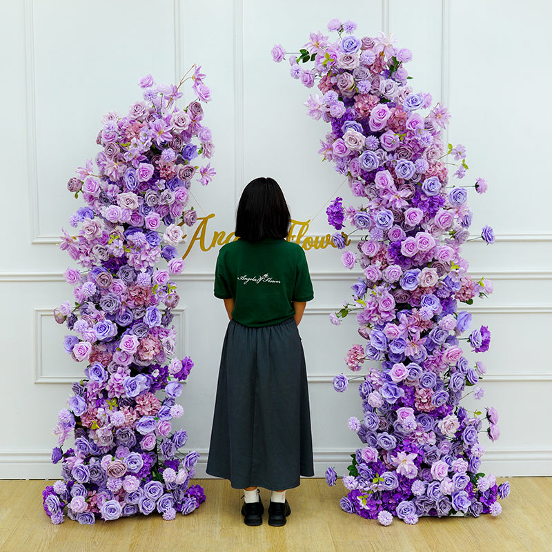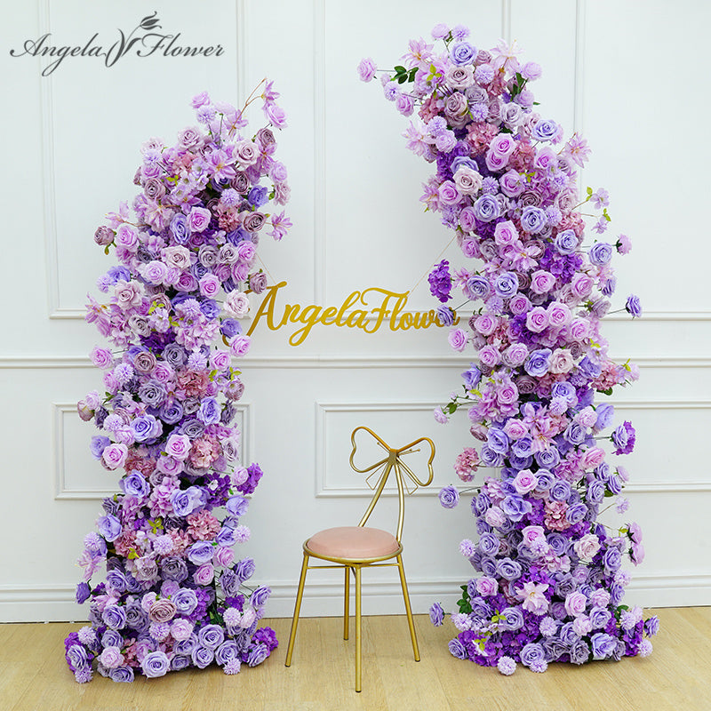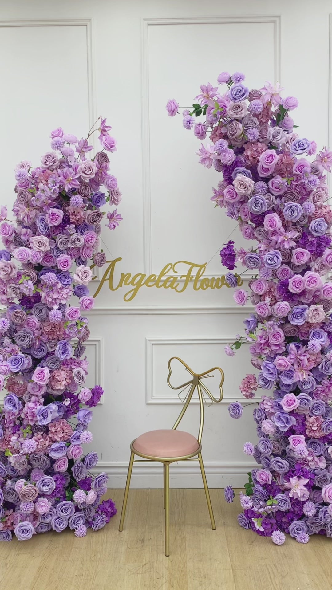 A8690 Purple Floral Arrangement Horn Arch Frame Wedding Decor Props