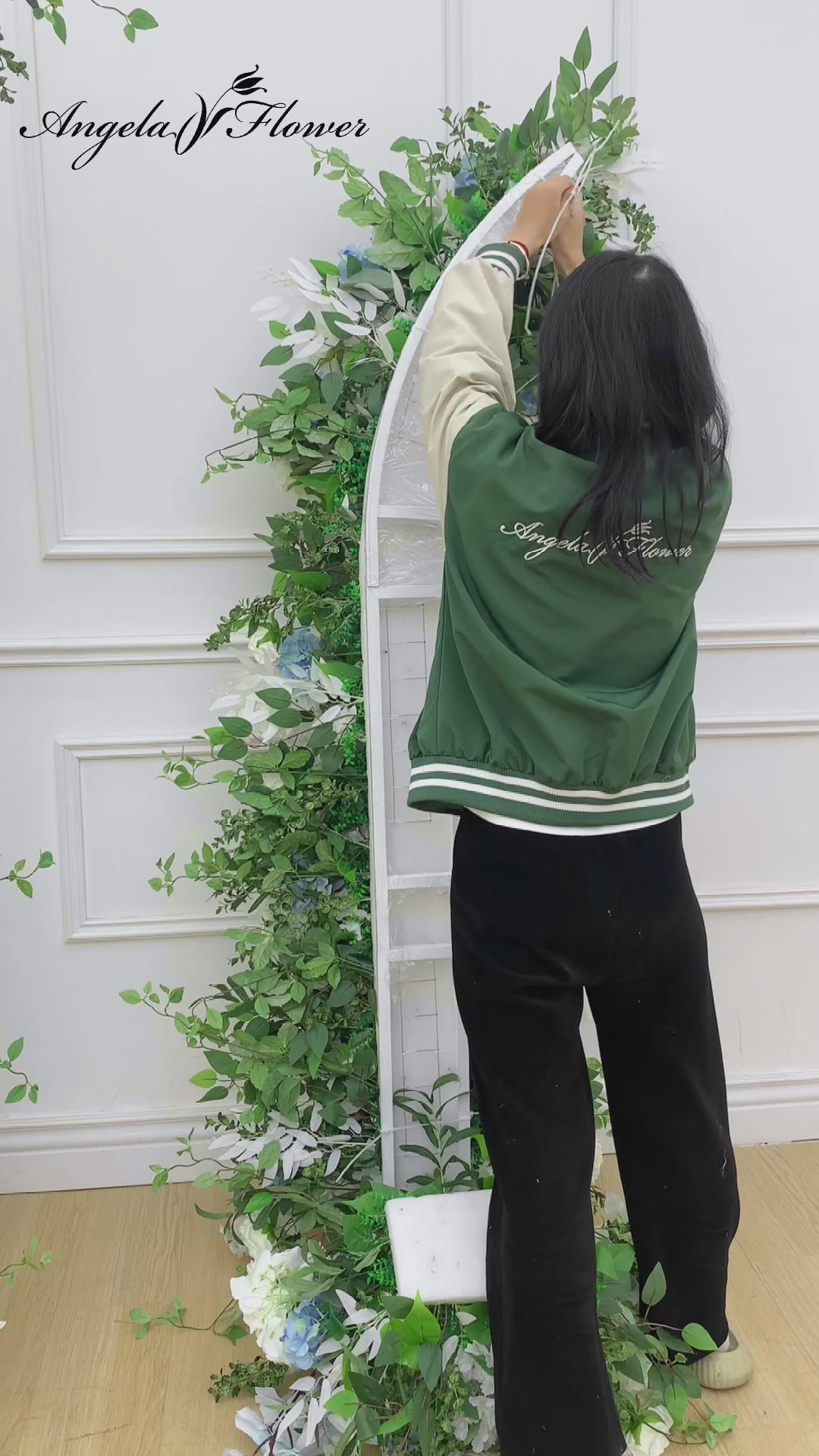 Angela Lore Urdin Zuria Lore Errenkada Ezkontza Atzeko Plano Adar Arku Dekorazioa Arrosa Orkidea Berde Peppermint Hostoak Lore Konposizioa Festaren Prop A8798