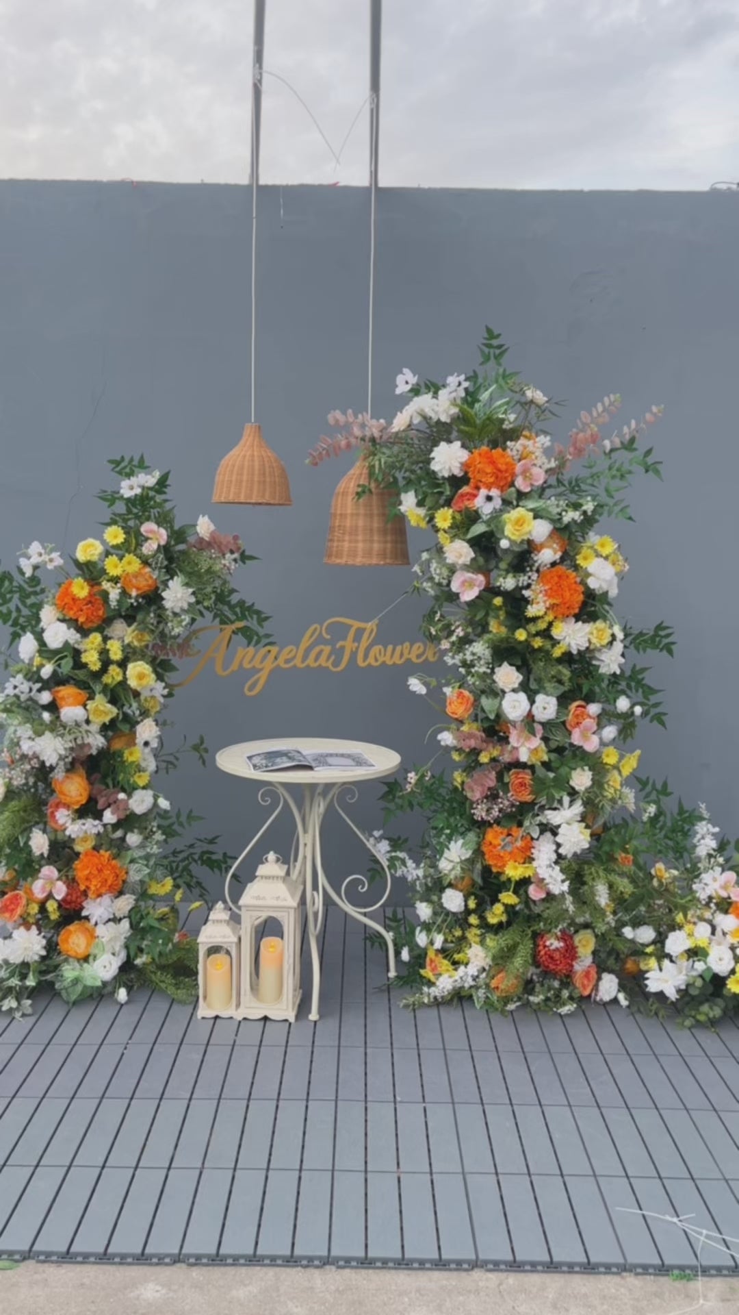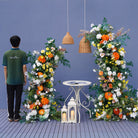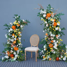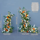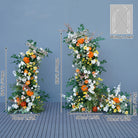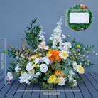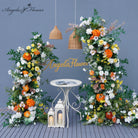 A8829 Orange Hydrangea White Flower Leaf Horn Arch Floor Row Wedding Background