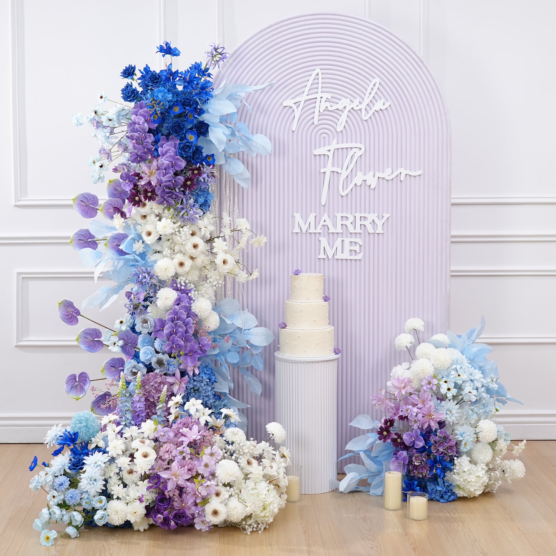 A8973 Purple Orchid Blue Floral Row KT Board Wedding Backdrop Decor Props