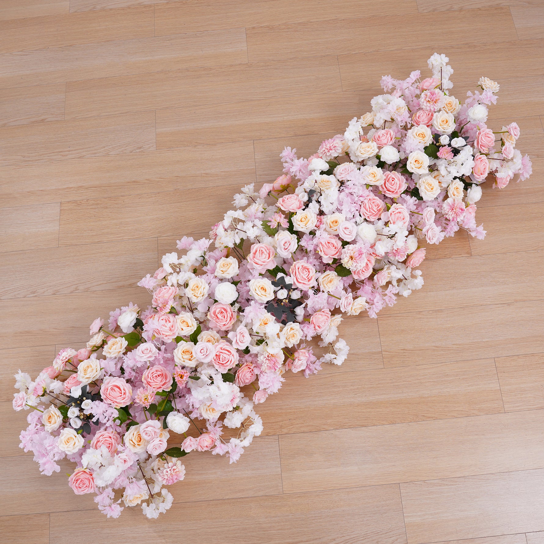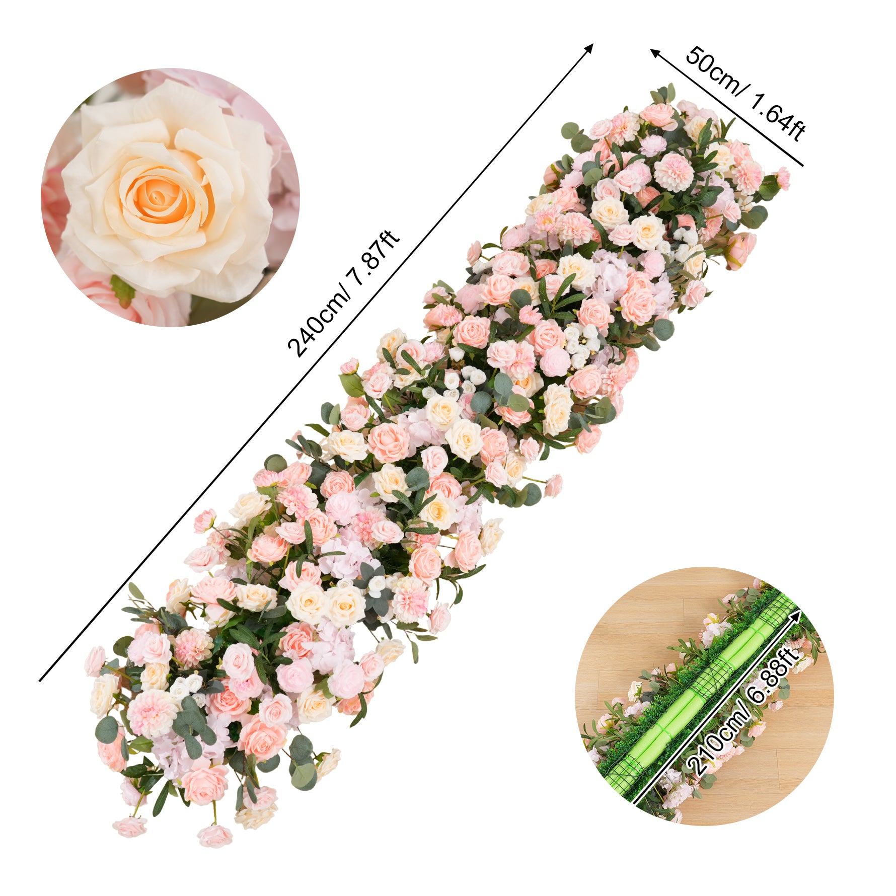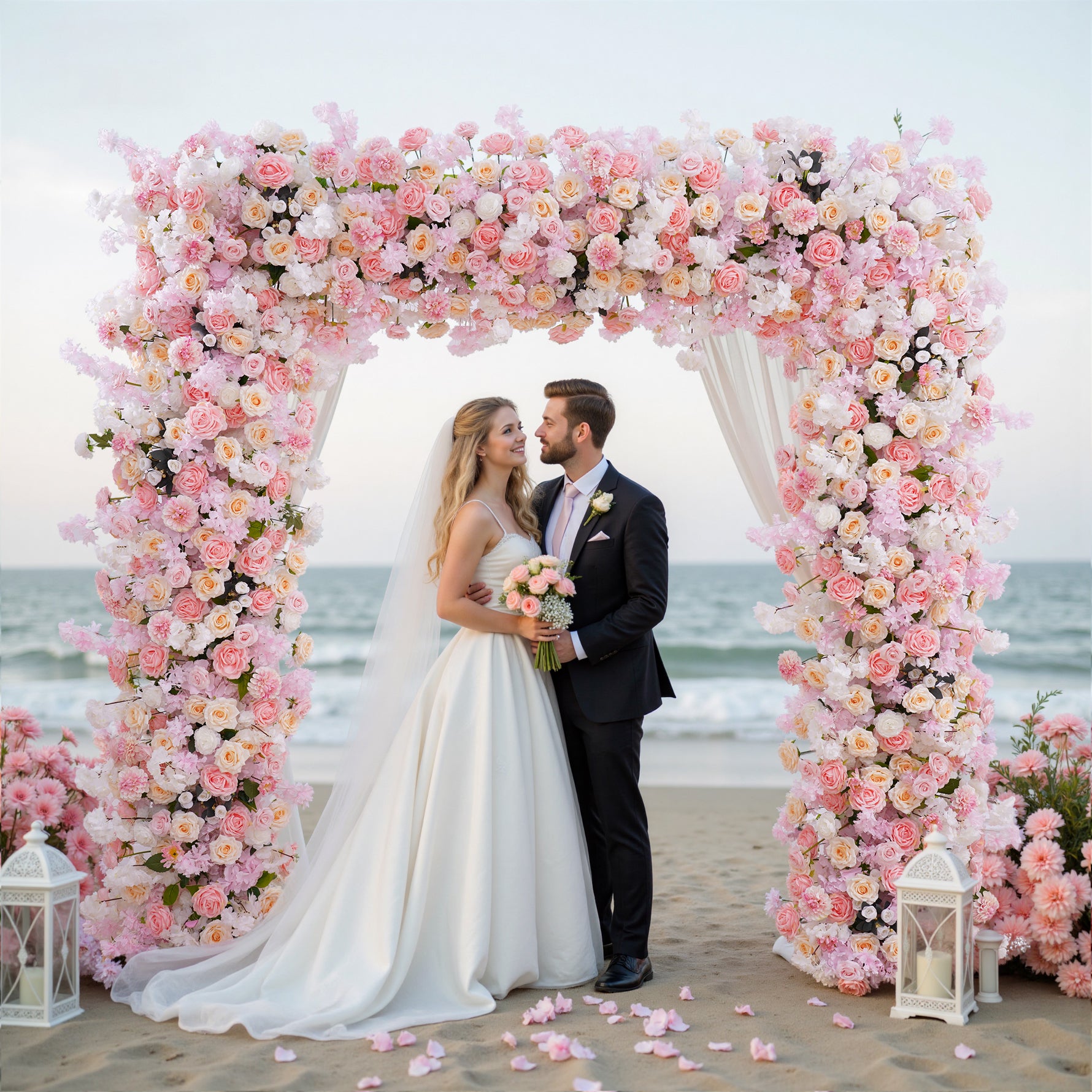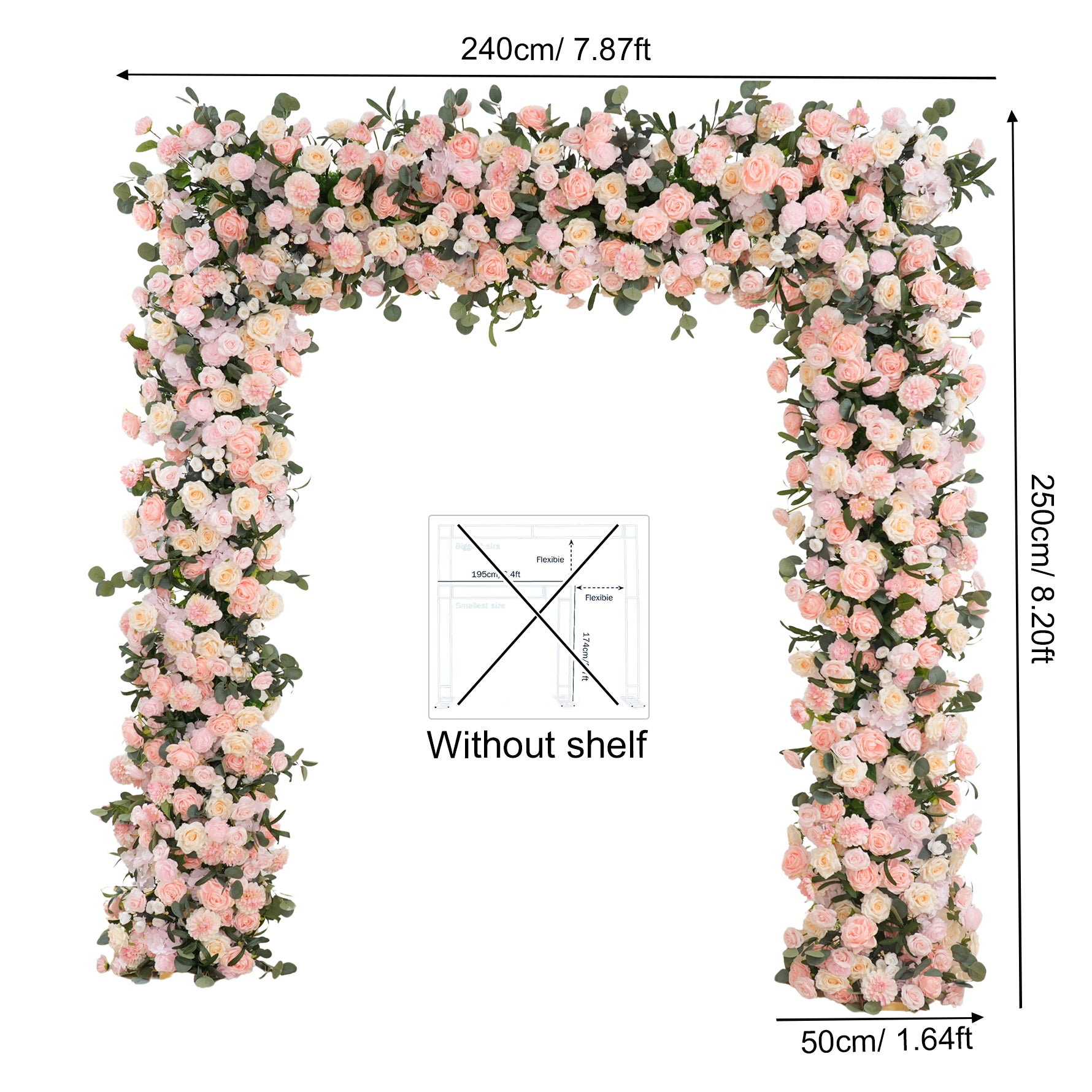 Color Inspiration: Add a touch of rosy charm to any setting with our elegant square arch, made from artificial pink and champagne roses, interspersed with delicate cherry blossoms. The gentle colors create a soft, romantic ambiance perfect for weddings, photo booths, or home decor. Create unforgettable memories with this stunning floral accent.