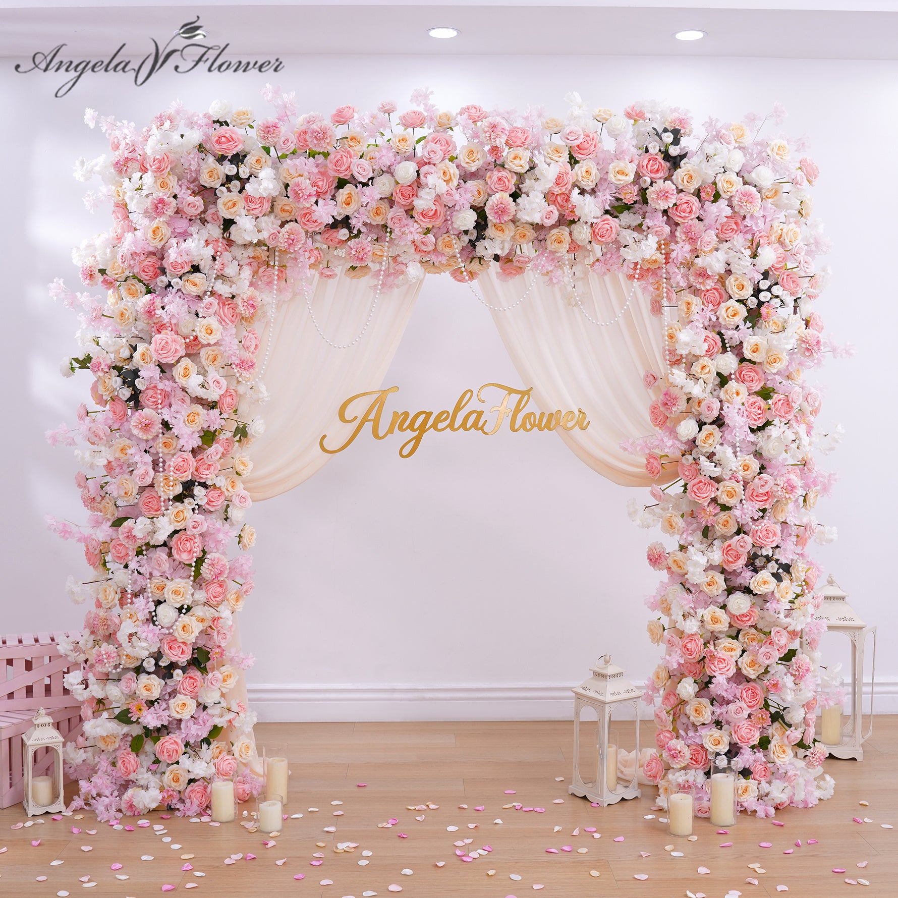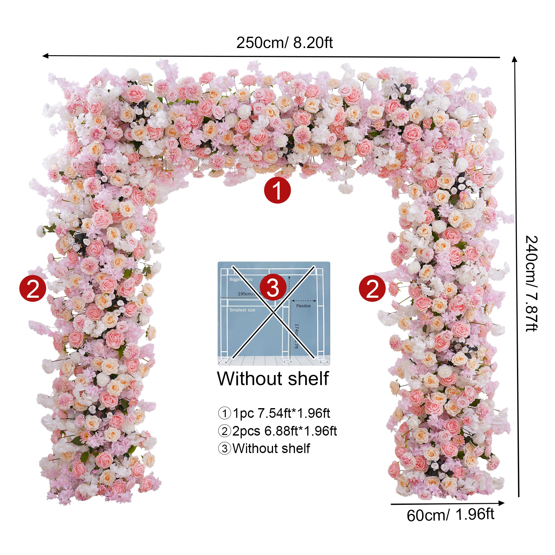 A9015 Pink Cherry Blossom Rose Flower Row Outdoor Wedding Decor Square Arch