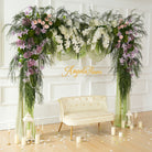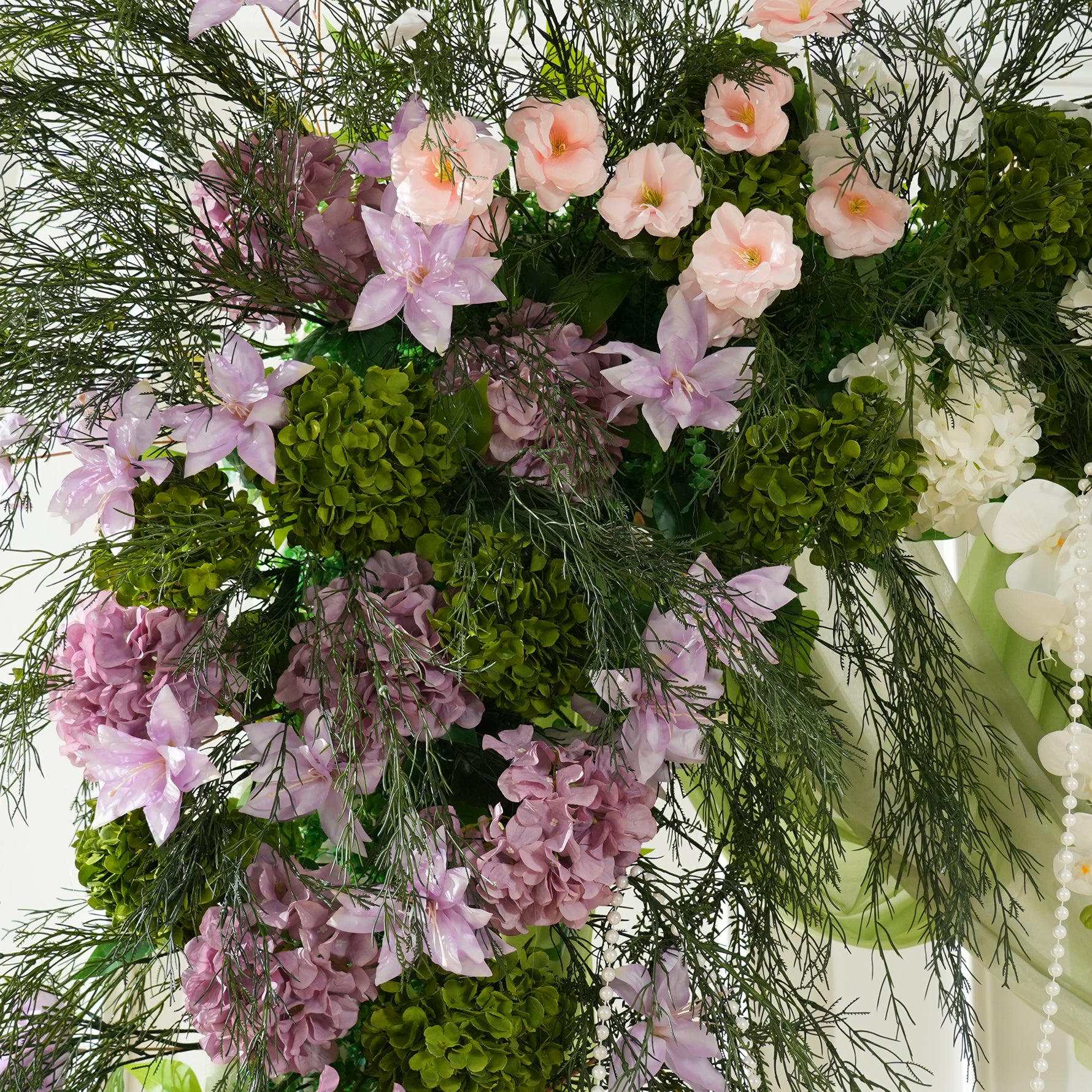 A9033 White Purple Greenery Hang Flower Arrangement Wedding Backdrop Frame