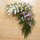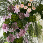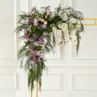 Color Inspiration: Create a dreamy ambiance with our artificial gradient corner hanging flowers! Featuring a beautiful blend of white, pink, purple, and green hues, these faux botanicals add a touch of romance to any wedding or event space. The corner design is perfect for maximizing space and creating eye-catching floral arrangements.
