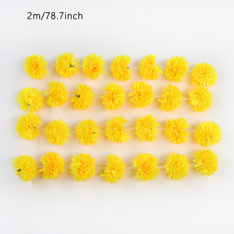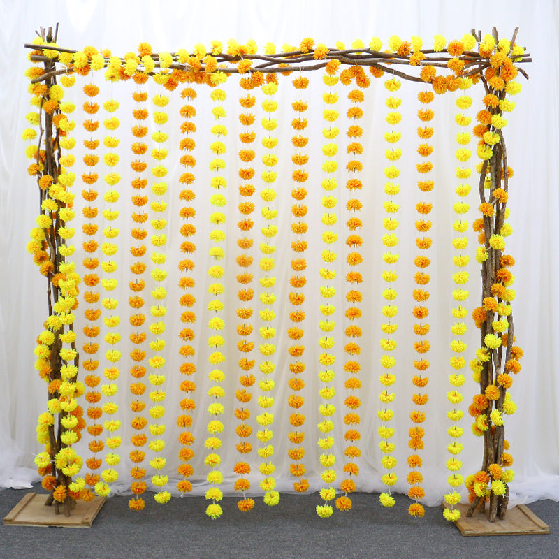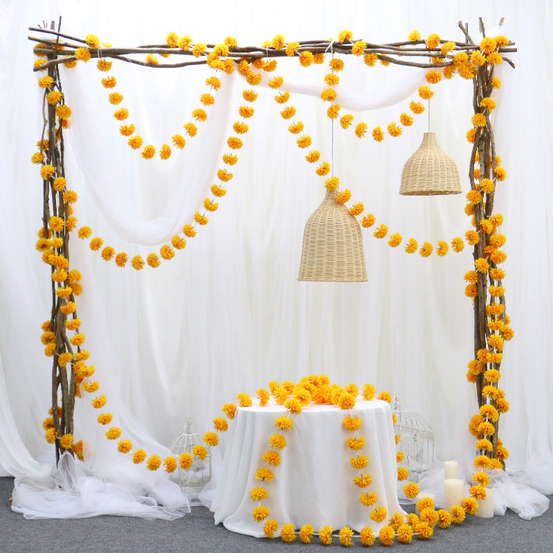 Indiako Estilo Ezkontza Atzeko Plana Apaingarri Artifizial Marigold Lore Katea Dandelion Lore Koroa Ekitaldi Jaiotza Festa Eszenatoki Propak A149 A7812