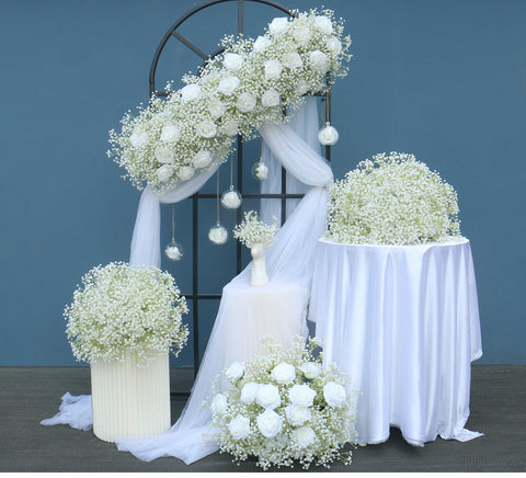 Zuri Errealitate Ukitu Gypsophila Haurren Arnasa Artifizialaren Loreen Ilara Antolaketa Ezkontza Mahai Erdiguneak Lore Bola Leiho Erakusketa A024 A7416 A9451 A7146
