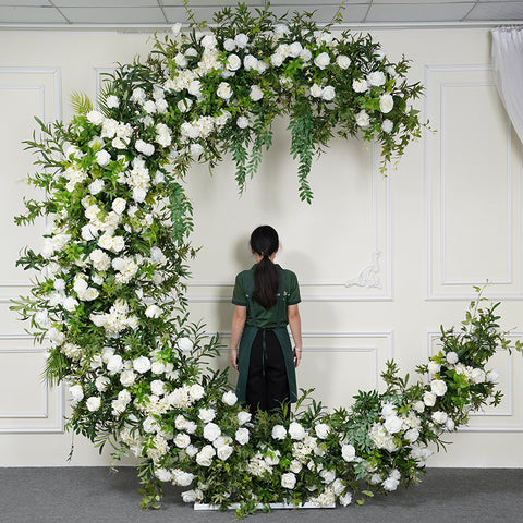 Ilargia Arku Dekorazioa Lore Ezkonduaren Atzeko Planoko Dekorazioa Artifizial Berde Landarea Arrosa Zuri Loreen Ilara Antolaketa Argazki Propak Loreen Estandea A4382 A7601