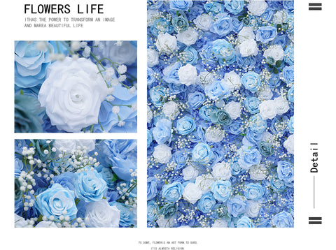 Angela Lore Urdin Arrosa Babysbreath 5D Rolatu Cortina Lore Horma Ezkontza Atzeko Planoko Dekorazio Ehuna Lore Horma Antolaketa A7824