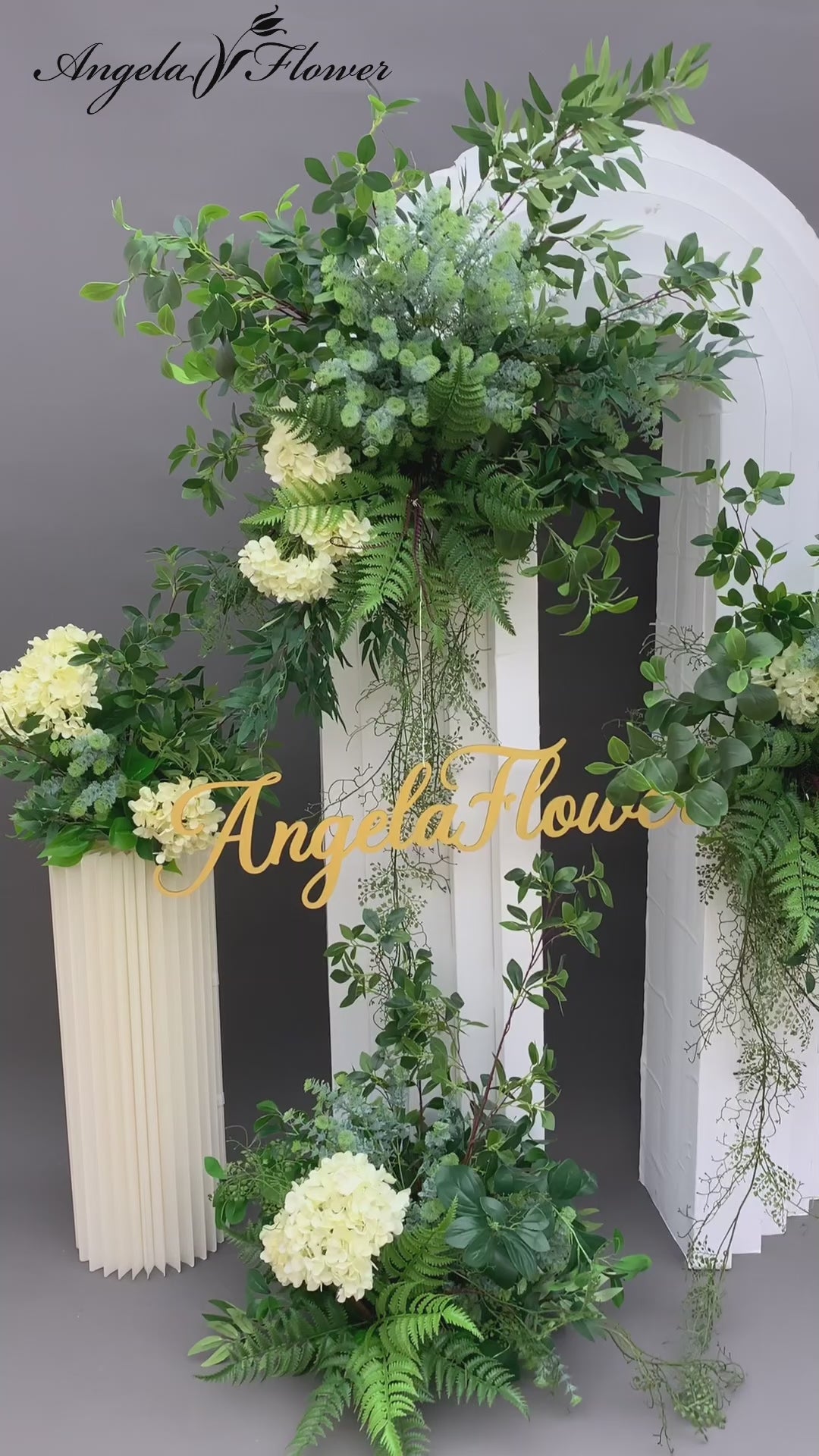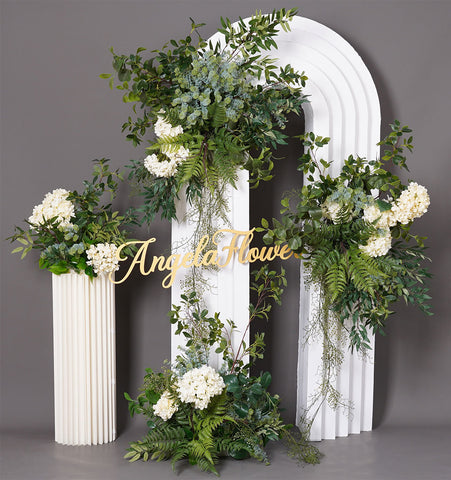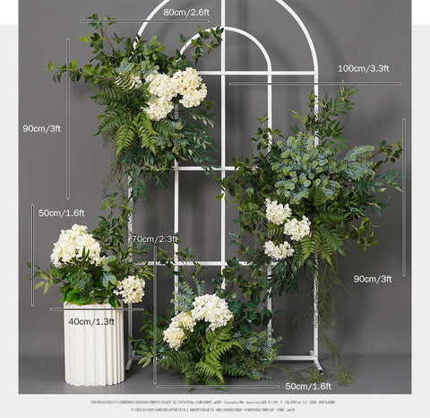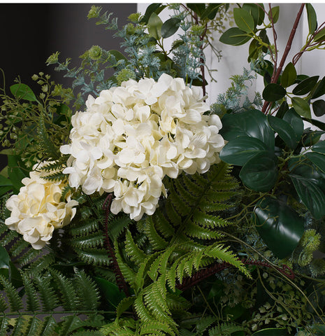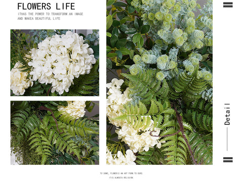 Angela Lore Green Fern Hostoak Zuria Hortensia Lurreko Lore Konposaketa Ezkontza Atzeko Plano Arku Dekorazioa Zintzilikatu Txoko Lore Ekitaldi Hornidura A8102