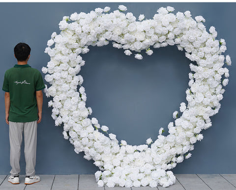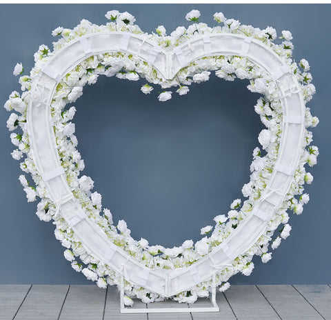 Angela Lorezko Oihal Zuria Arrosa Lore Konposizioa Ezkontza Atzeko Plana Bihotz-Formako Arku Markoa Eszenatoki Lore Estand A8203