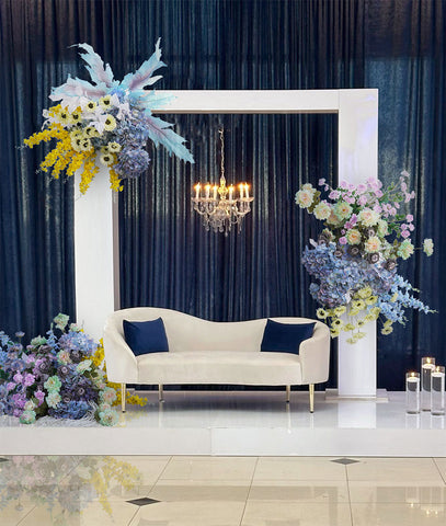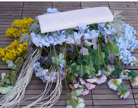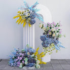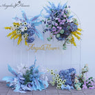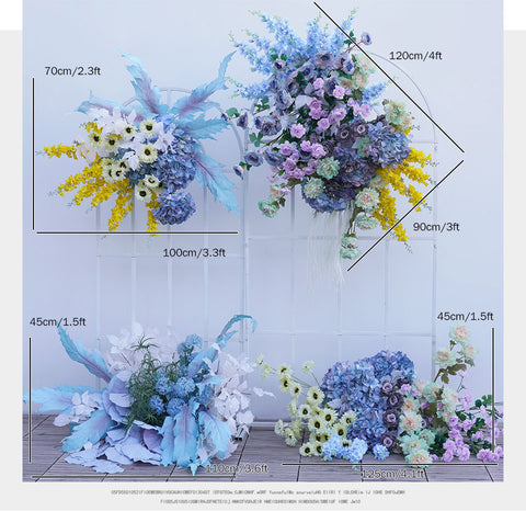 Angela Lore Blue Yellow Hortensia Orkidea Eztei Atzeko Plano Arku Markoa Apaingarri Suspenditu Antolamendu Lore Aisle Lur Lore Ekitaldi Stand A8241