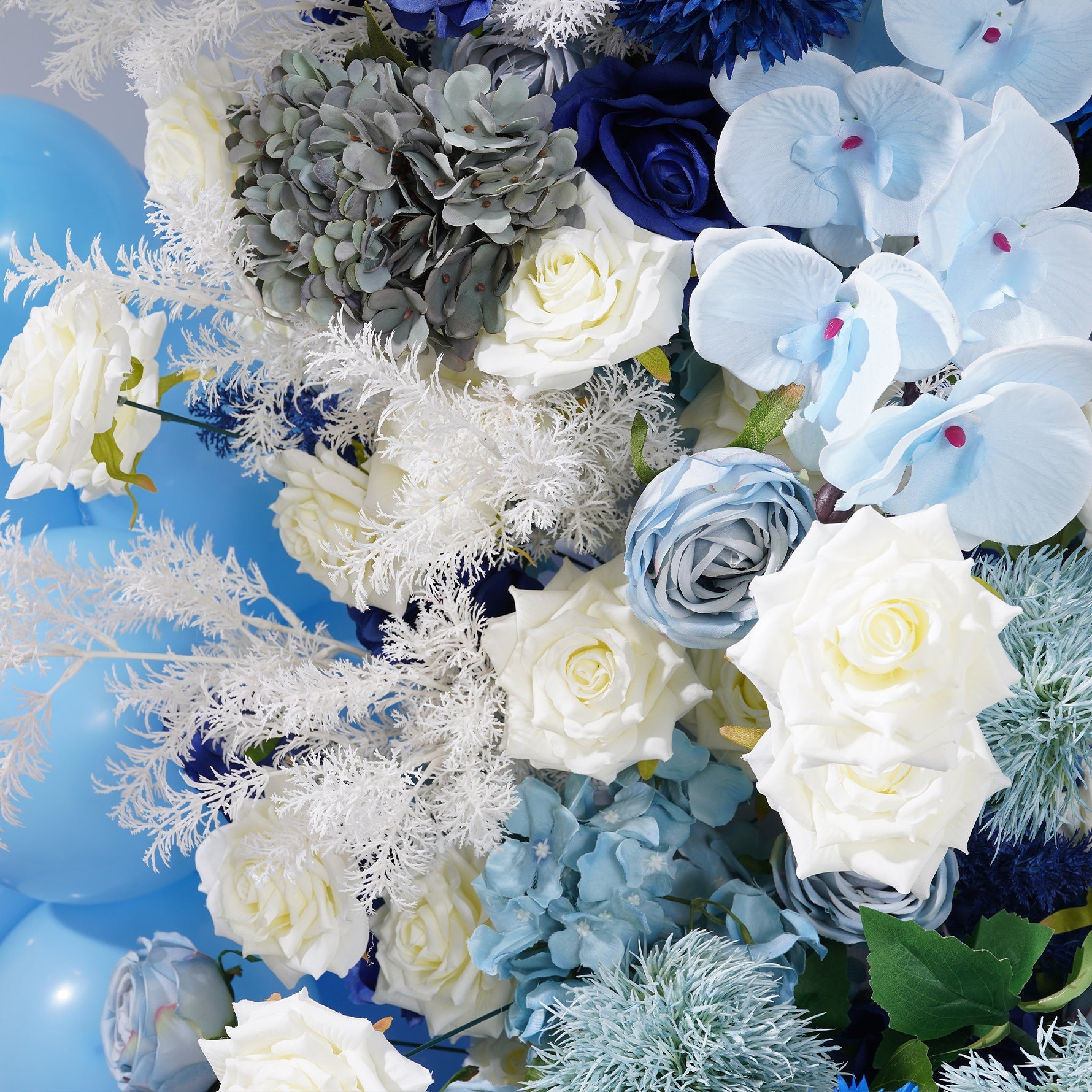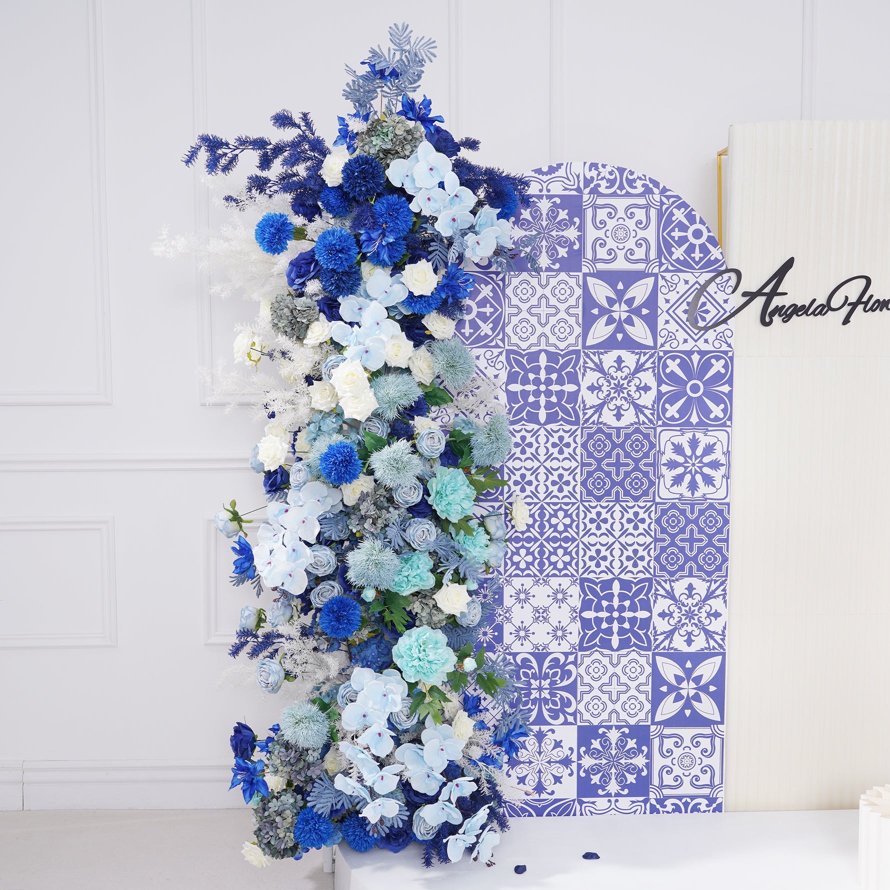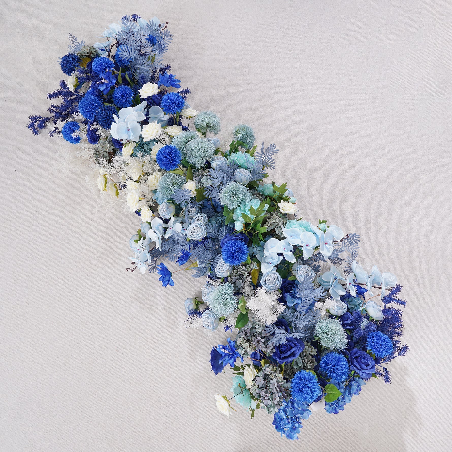 A8846 Blue Hydrangea Orchid Floral Arrangement Flower Row Wedding Backdrop Decor