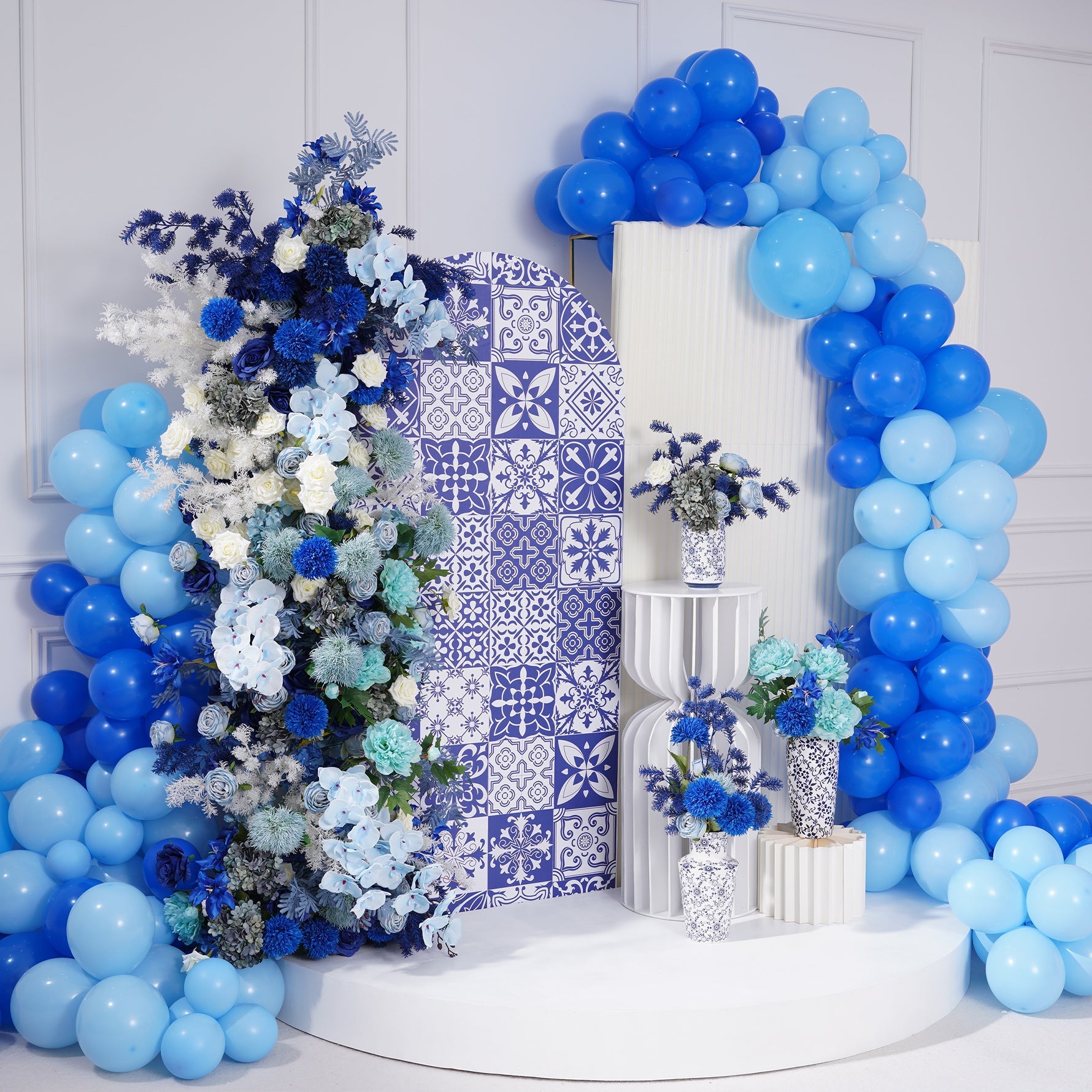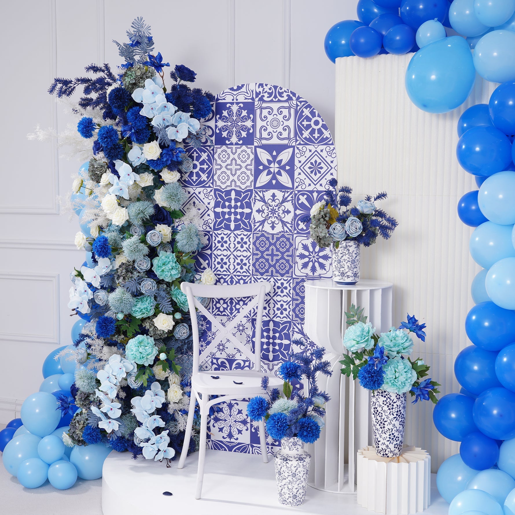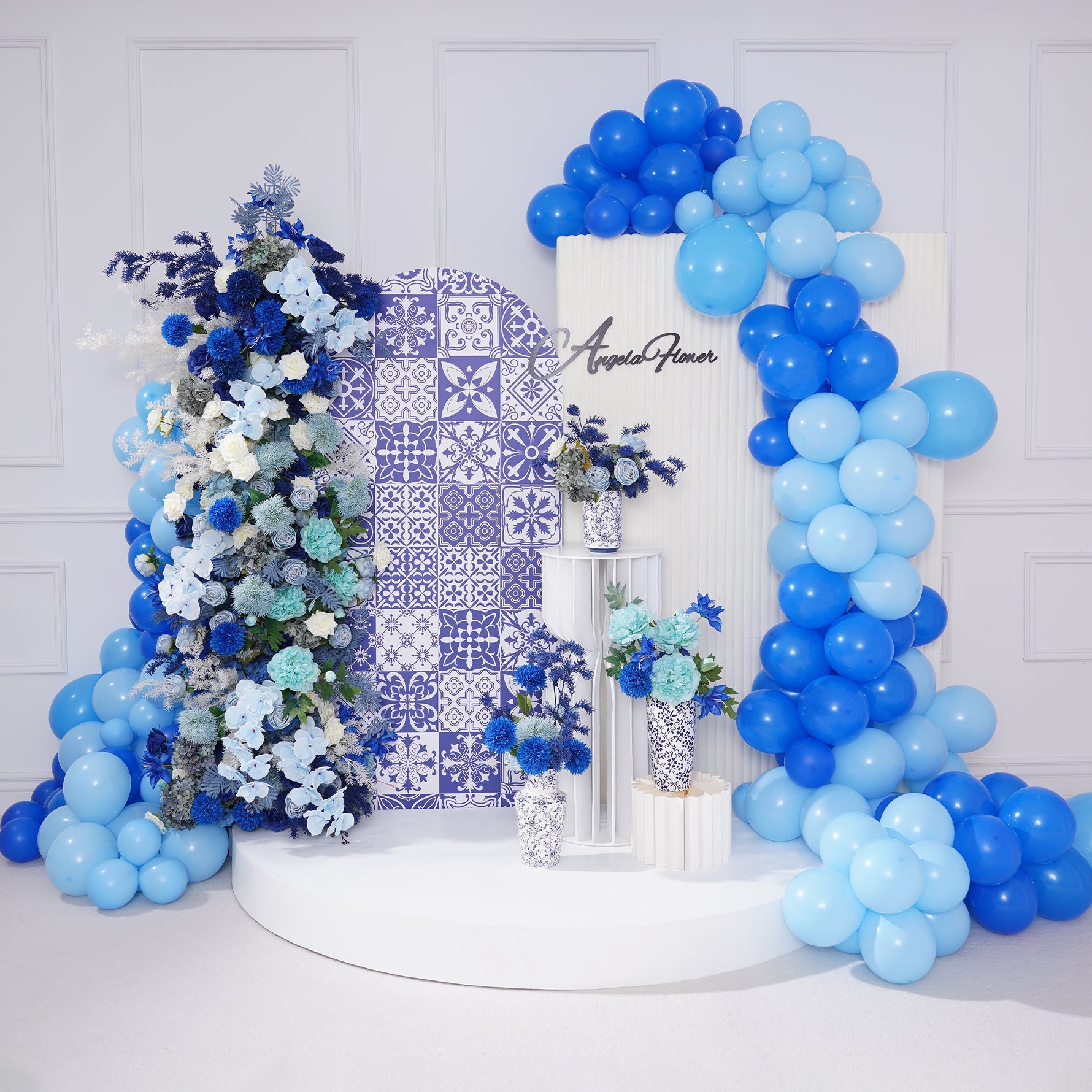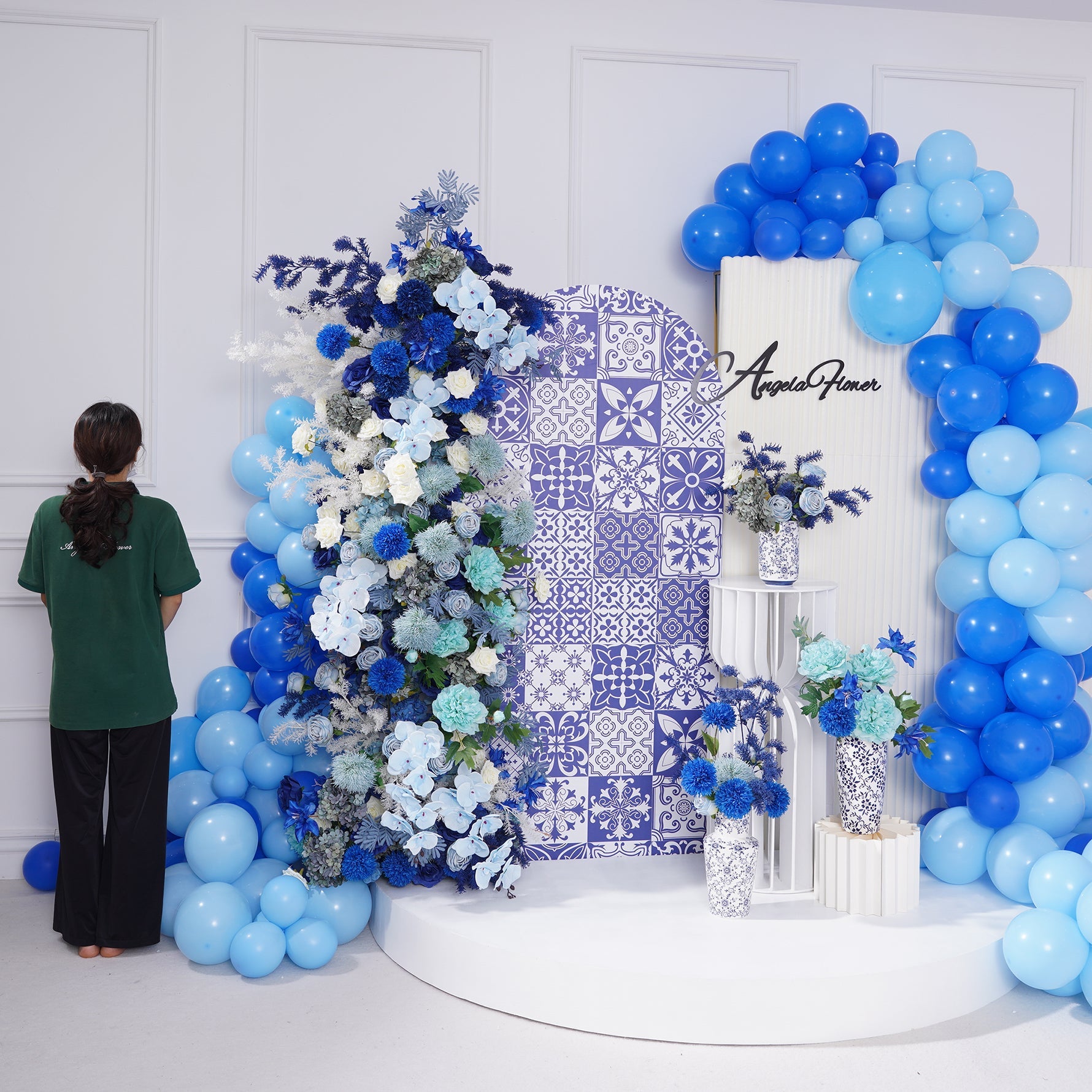 A8846 Blue Hydrangea Orchid Floral Arrangement Flower Row Wedding Backdrop Decor