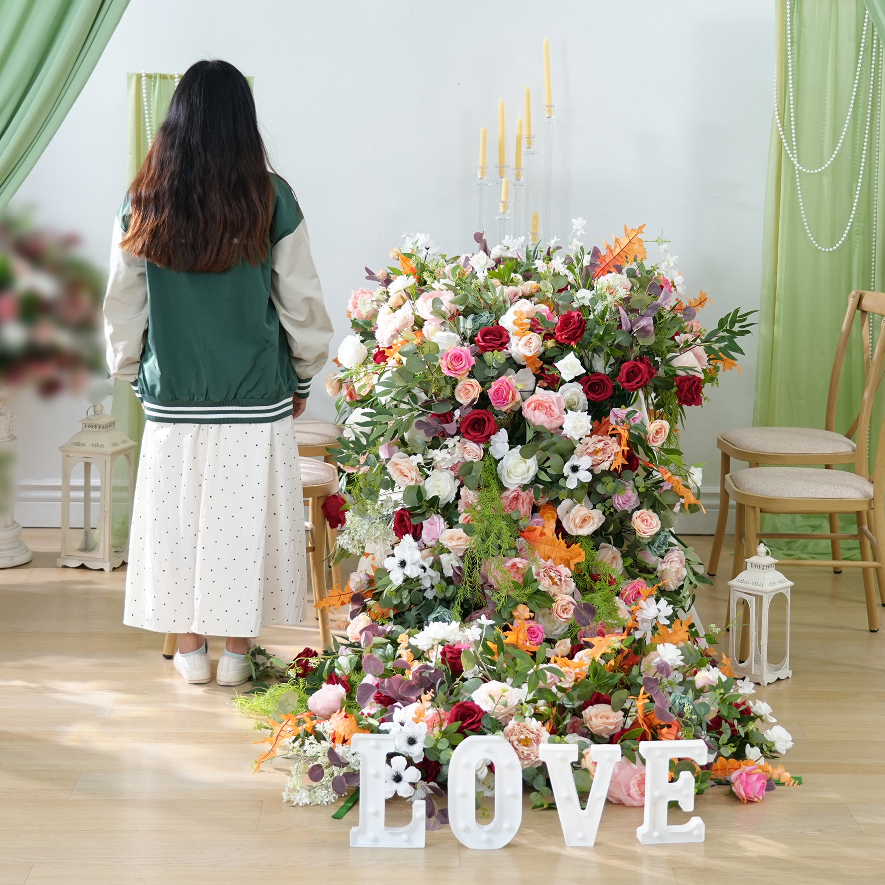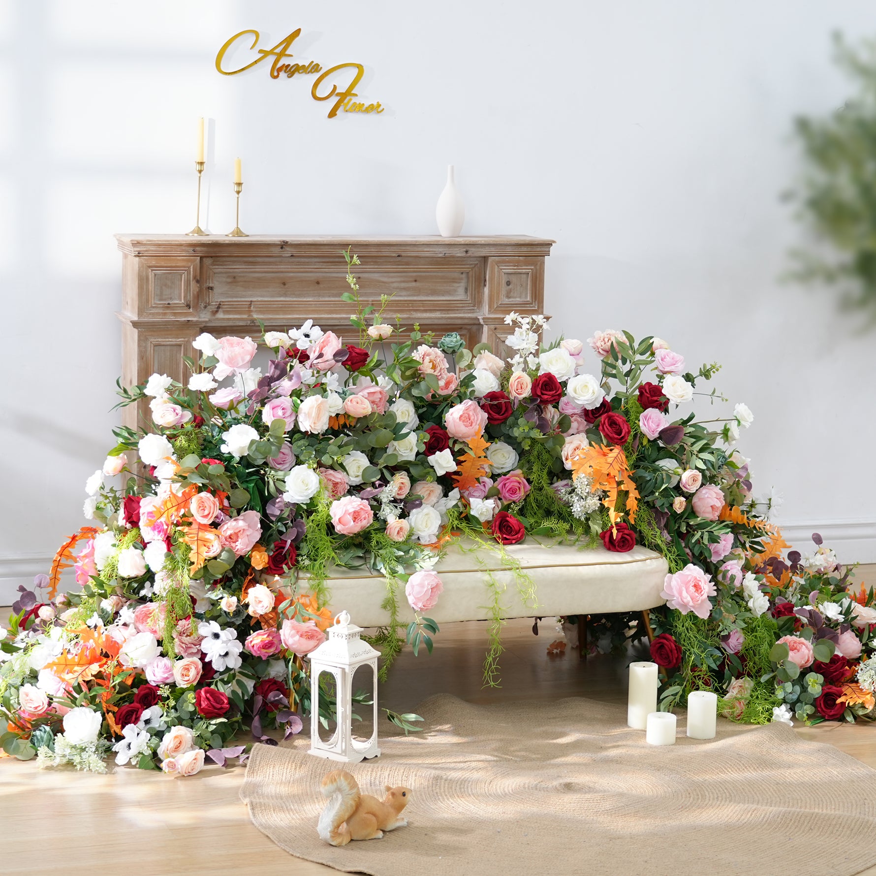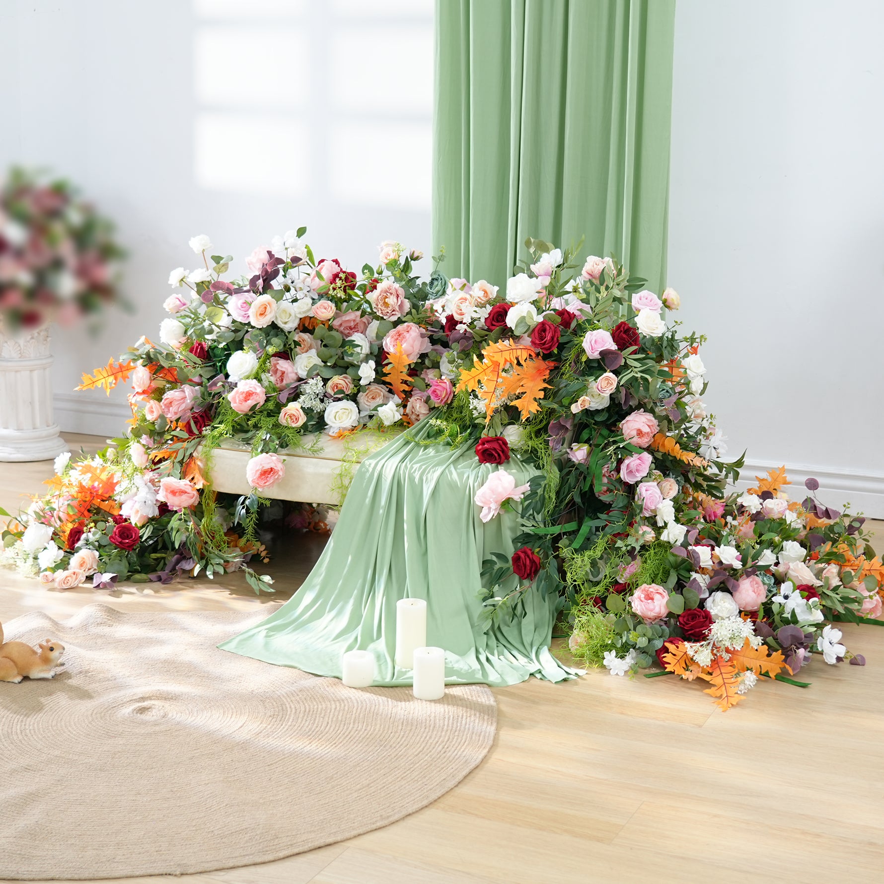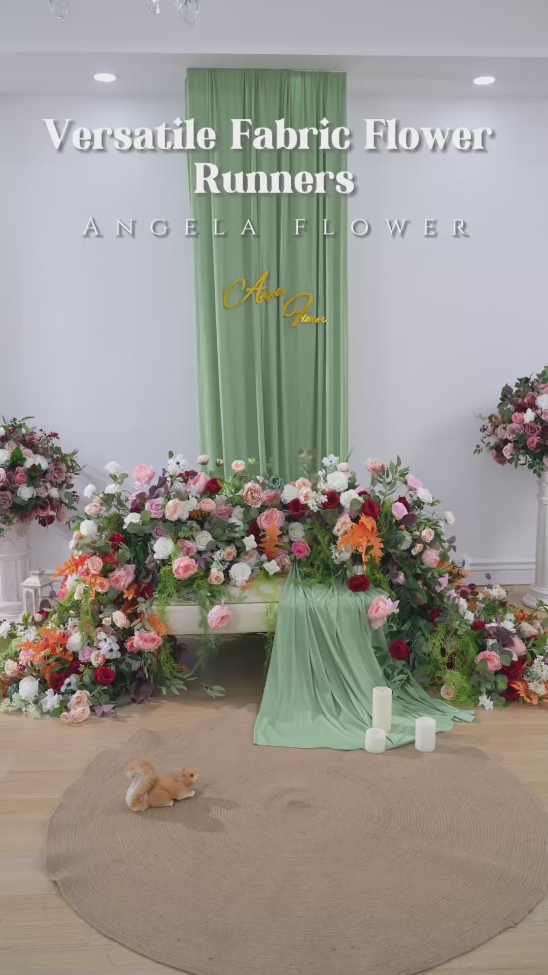 A8928 Colorful Flower Greenery Table Sofa Runner Cloth Base Wedding Banquet Props