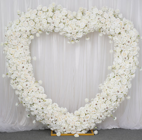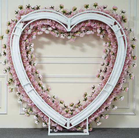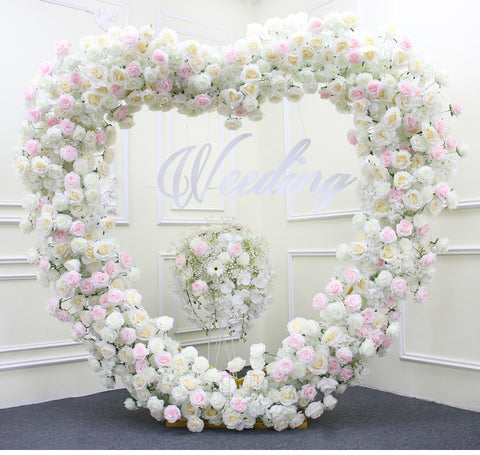 Luxuzko Bihotz-Formako Apalategi Dekorazioa Lore Konposizioa Ezkontza Arku Atzeko Planoko Dekorazioa Arrosa Zuri Lore Lerroa Festaren Propia Markoa Lore Estand A7591 A6625 A7448 A7449 A8046