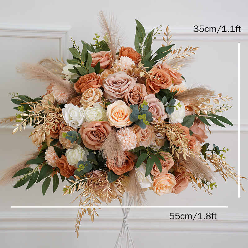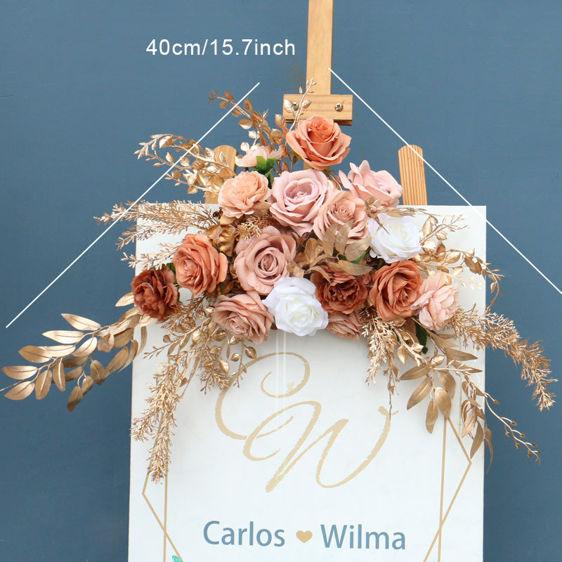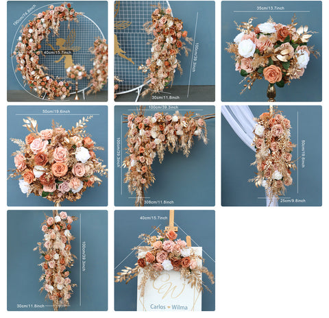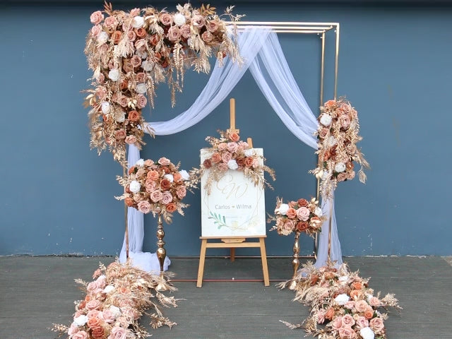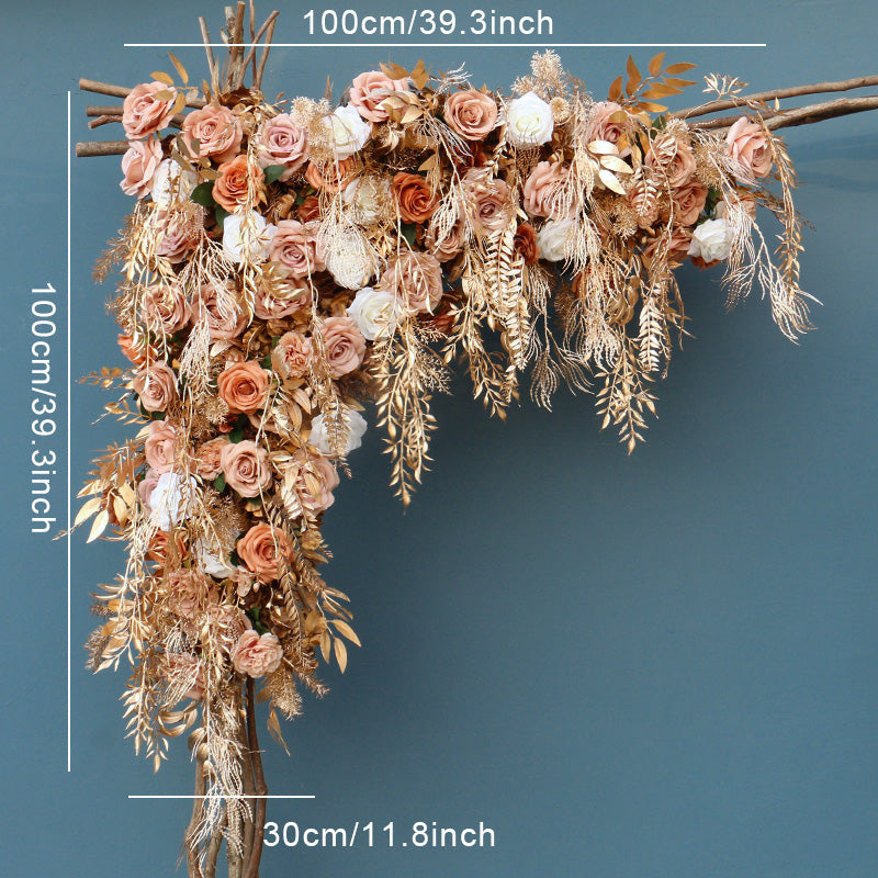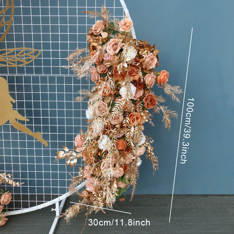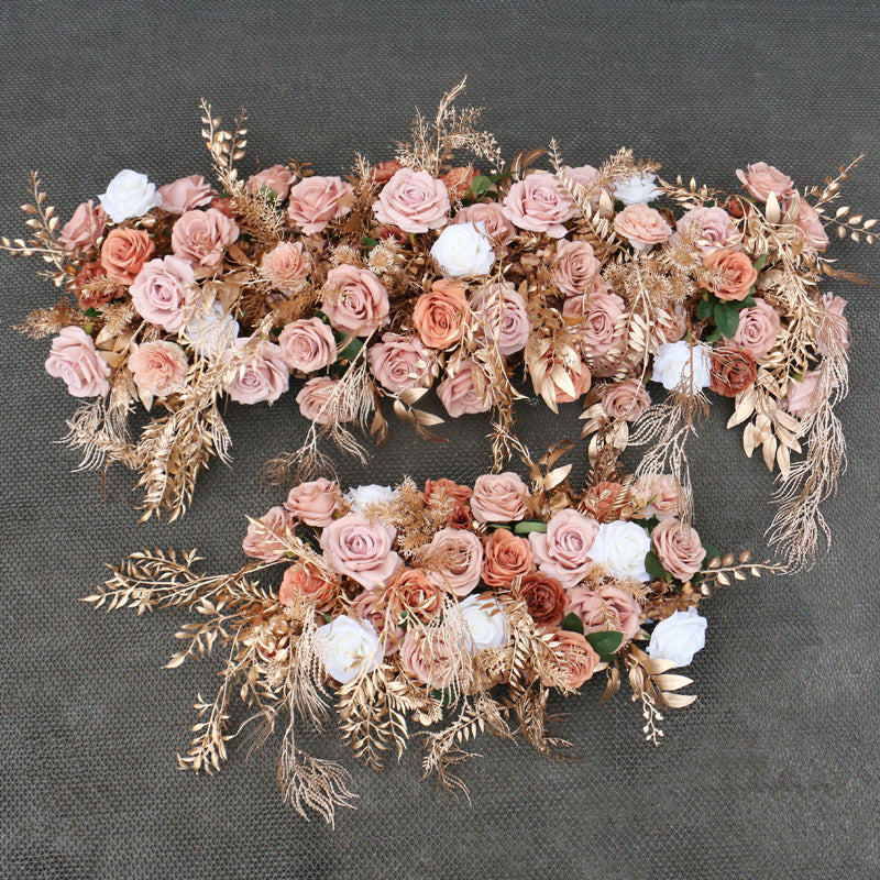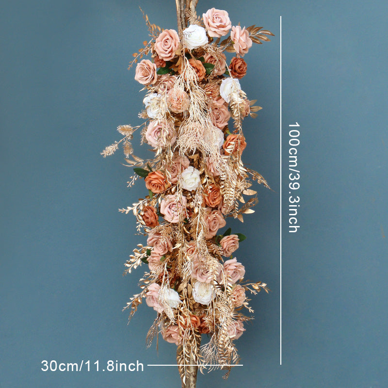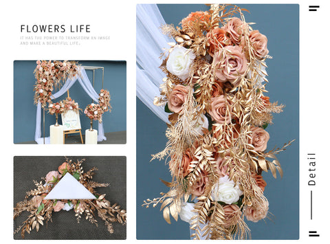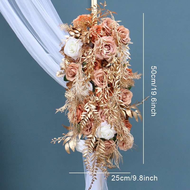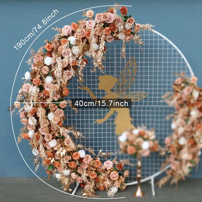 Urre Hostoak Arrosa Eztei Artifizialen Lore Multzoa Ezkontza Atzeko Plano Dekorazioa Ilargi Forma Zintzilikatutako Txoko Lore Mahai Lore A087 A6958
