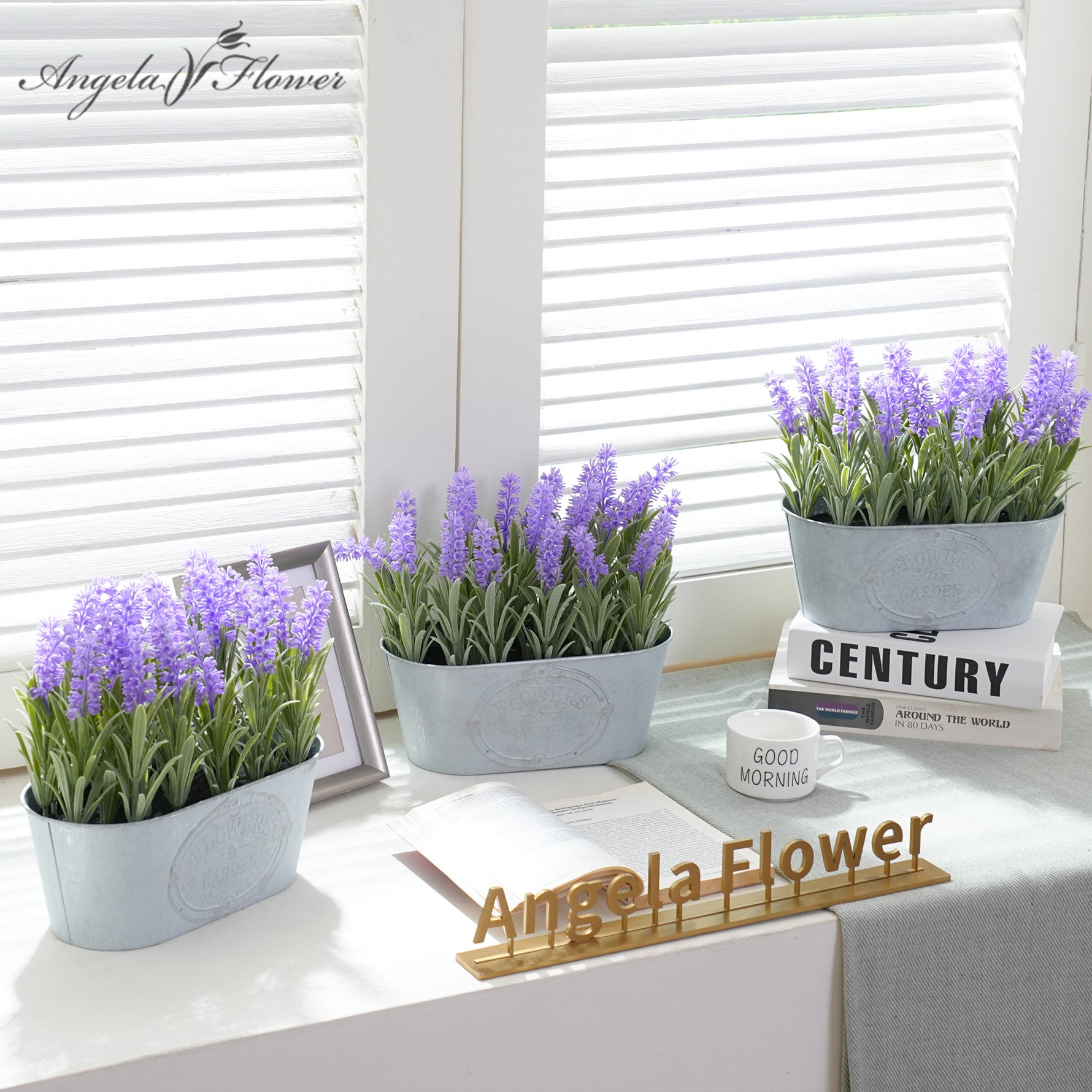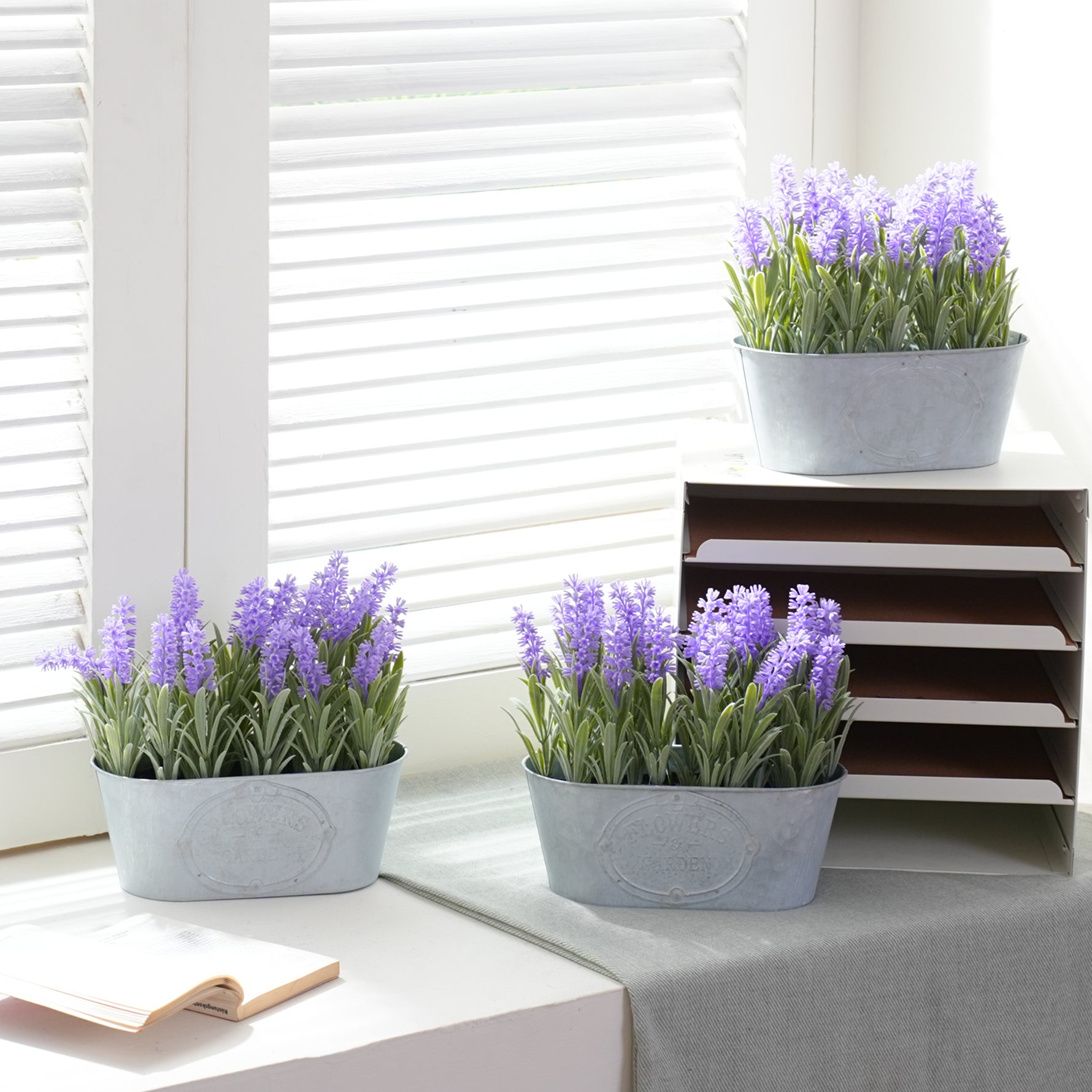 A5620223 0.92ft Artificial Purple Lavender Bonsai Potted Plants
