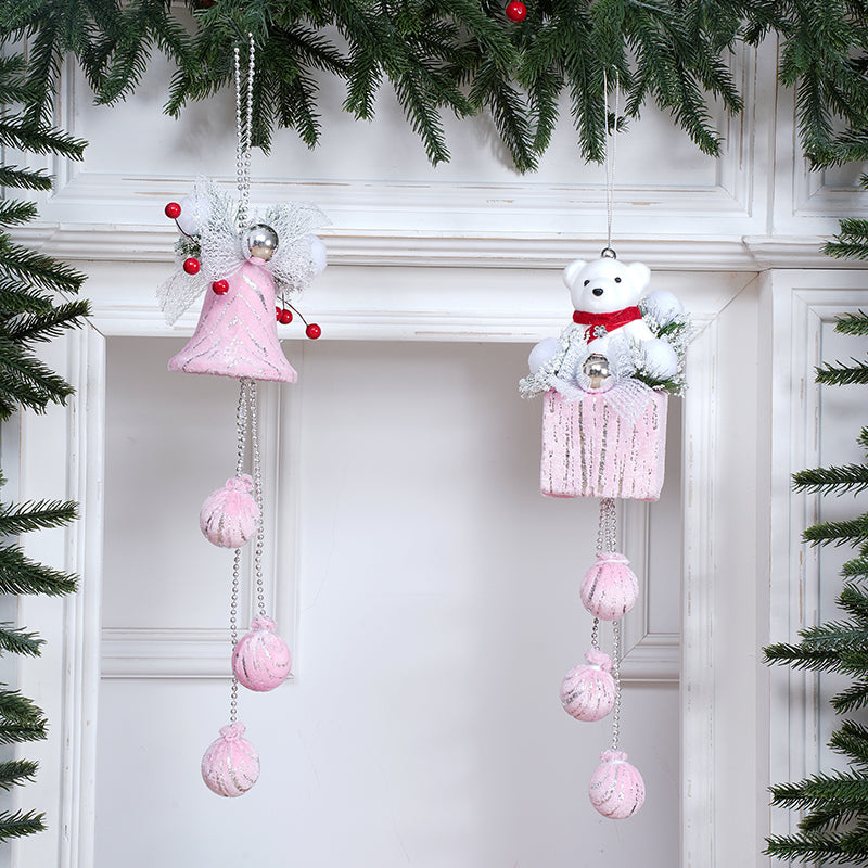Angela Lore Gabonetako Apaingarriak Arrosa Txiki Hartza Zintzilikatzeko Txiki Bola SD0310+SD0315