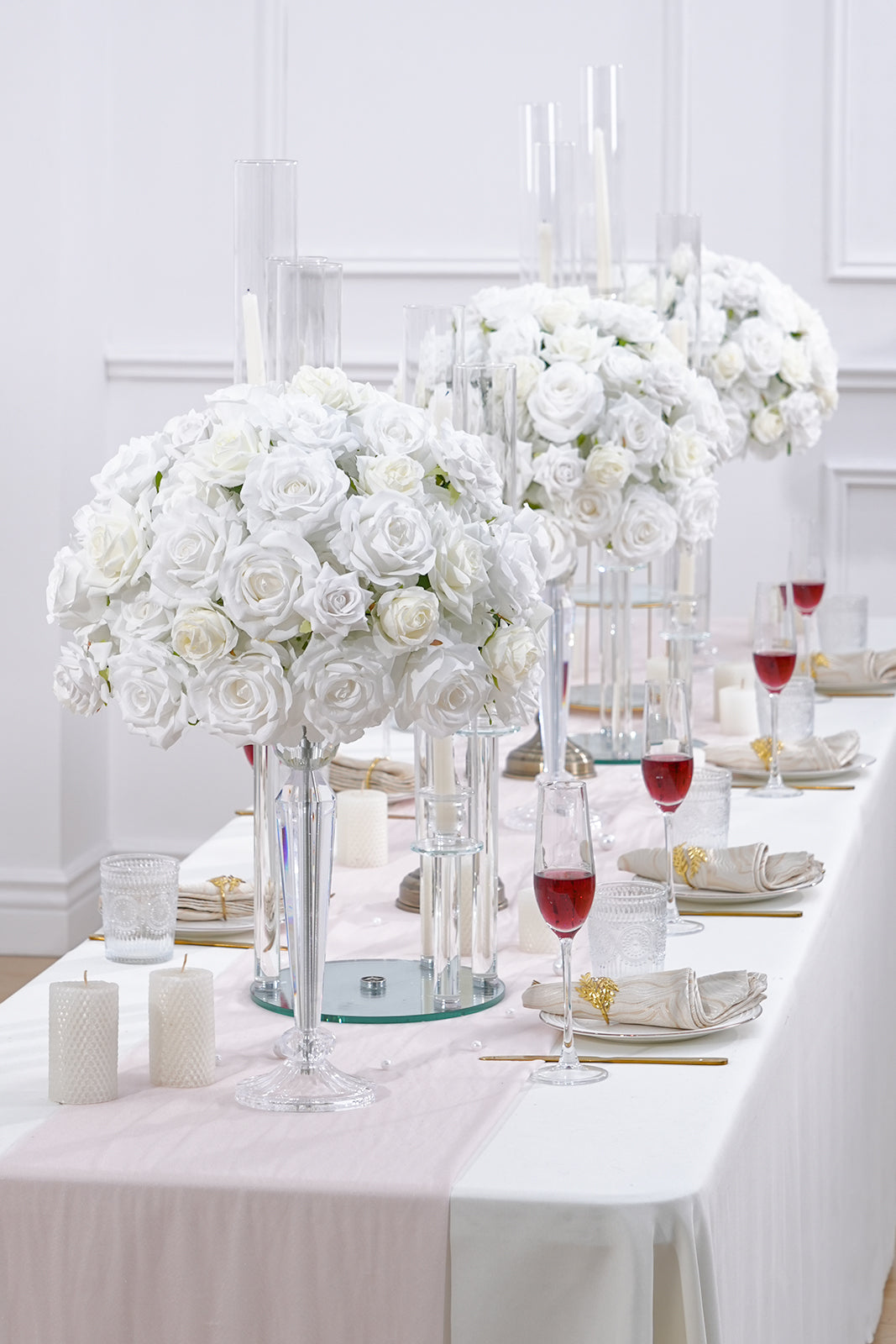 A8994 2pcs 40cm White Rose Flower Ball Wedding Table Centerpiece Decor Props