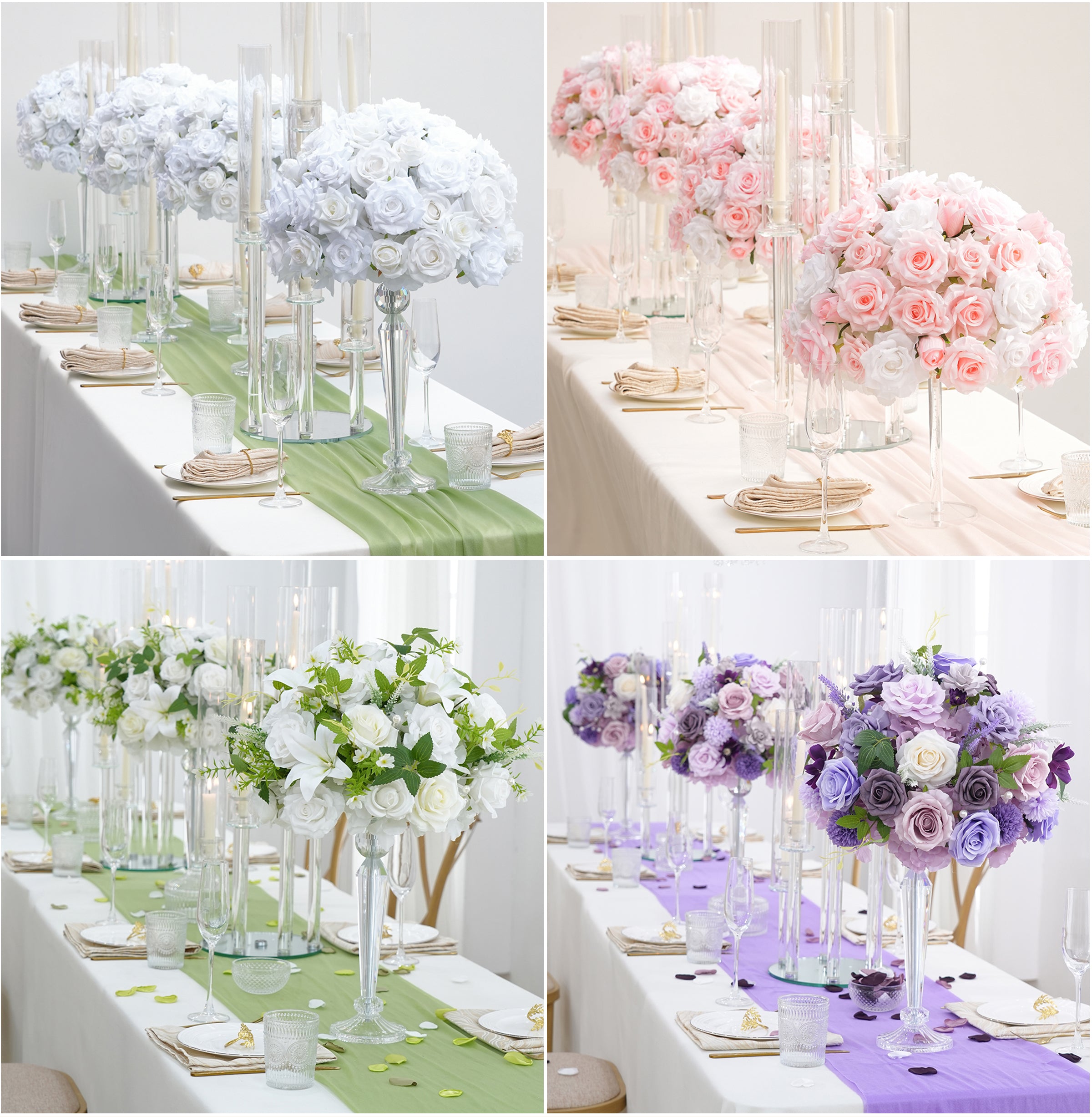 Color Inspiration: Elevate any space with our white rose flower balls set. These elegant artificial flower balls feature primarily delicate roses, creating a timeless and romantic ambiance. Perfect as wedding décor, event centerpieces, or home accents. Enjoy lasting beauty without the hassle of wilting or watering. This set effortlessly adds a touch of sophistication and charm.