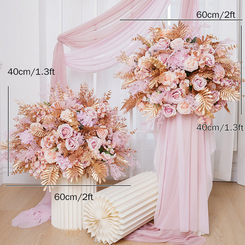 Angela Flower Luxe Urre Hostoak Arrosa Ezkontza Dekorazioa 60cm 3/4 Lore Bola Bankete Ekitaldi Mahai Erdiko Elementuak Leiho Erakusketa A8113