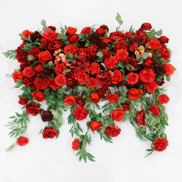 Angela Flower Luxuzko Gorria Ehuna Lore Horma Loro Irekiak Hostozko Berdeak Ezkontza Lore Konposaketa A7762