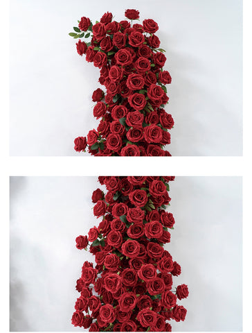 Angela Lore Luxury Gorria Arrosa Berde Hostoak Ezkontza Atzeko Plana KT Taula Arku Dekorazioa Zintzilikako Lore Antolaketa Lurreko Loreak Festaren Prop A8088