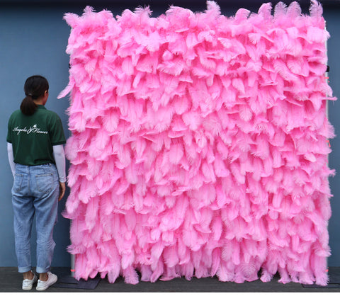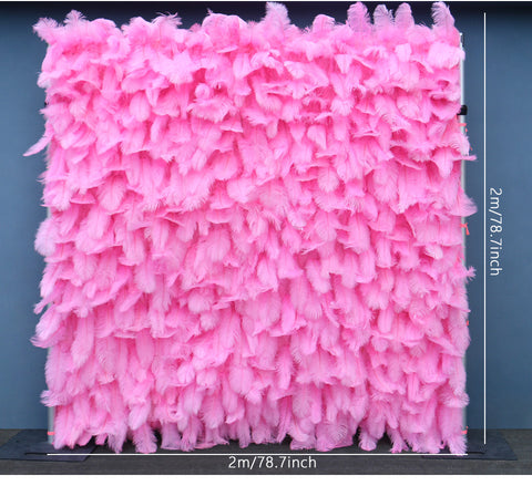 5D Arrosa Feathers Ehuna Rolo Irudi Horma Ezkontza Atzeko Plano Dekorazio Ehuna Berde Landare Horma Urtebetetze Festa Ekitaldi Prop Window Display A138 A7422