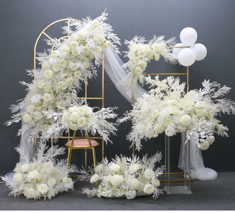 Luxuzko Zuri Mist Belar Pompom Artifizialko Loreen Lerro Ezkontza Arku Dekorazioa Arrosa Zintzilikatu Txoko Loreal Festa Atzeko Planoko Dekorazioa Lurreko Lore A077 A7452 A7608