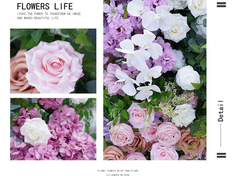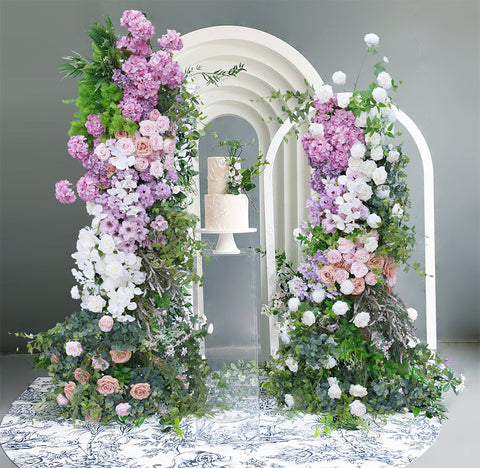 Angela Lore White Rose Purple Hydrangea Berde Landarekin Lore Runner Ezkonduen Atzeko Plana KT Taula Arku Dekorazioa Lore Antolaketa Taula Lore A7825