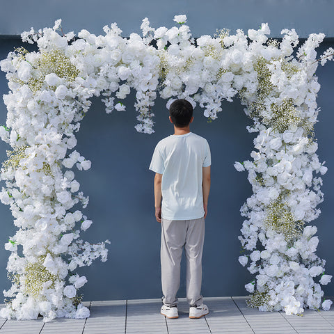 Angela Flower Luxuzko Zuria Eztei Atzeko Arku Dekorazioa Kirsia Loreak Babysbreath Arrosa Lore Konposizioa Ekitaldi Festaren Eszenatoki Lore Estand A7828