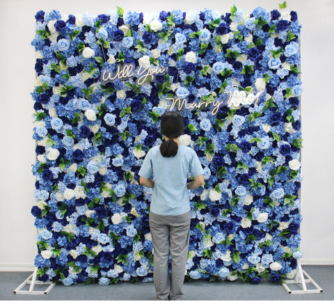 Errege Urdina 3D Artifizial Peonia Hortensia Ehuna Lore Horma Bilduko Arrosa Ehuna Lore Horma Festaren Ezkontza Atzeko Plana Dekorazioa A7892