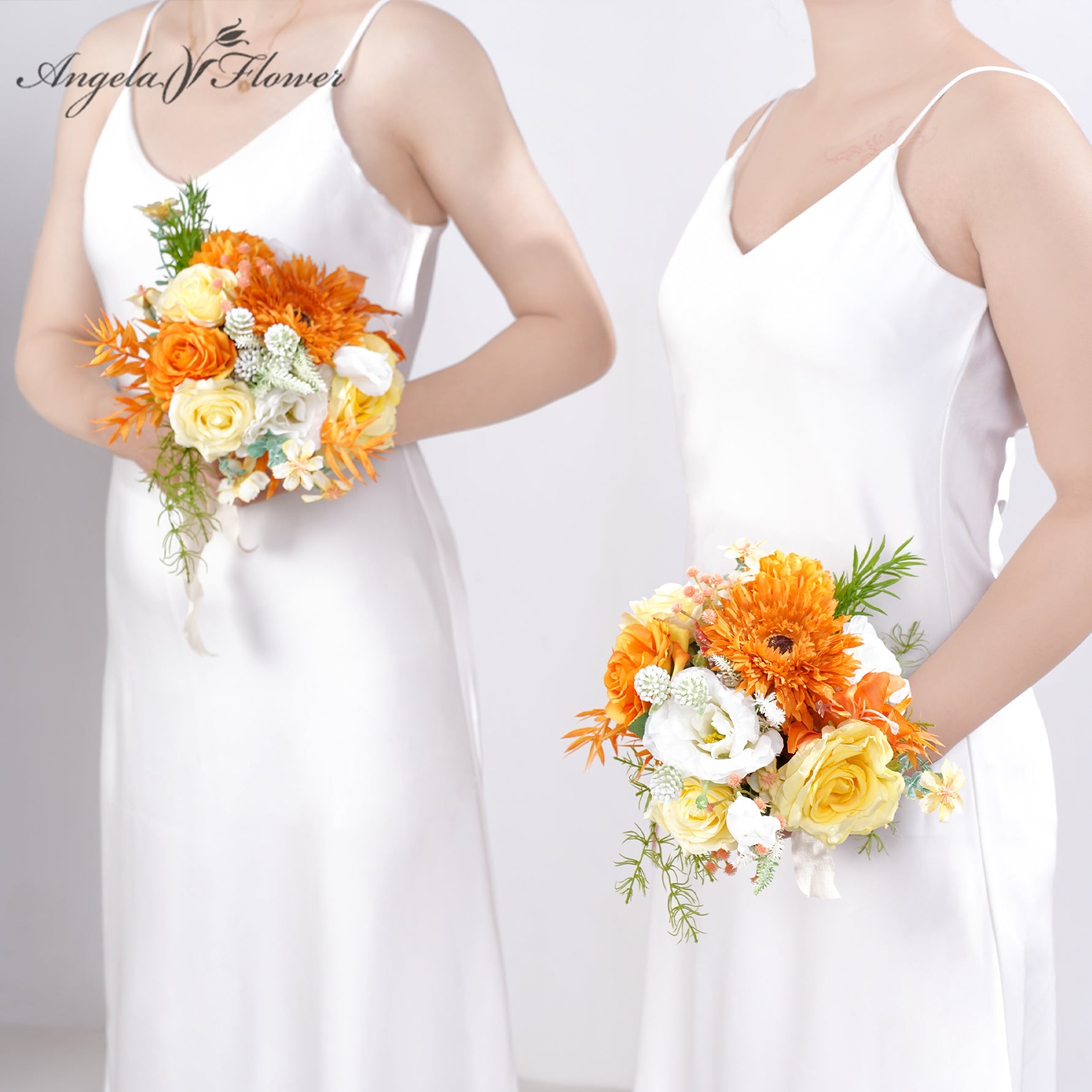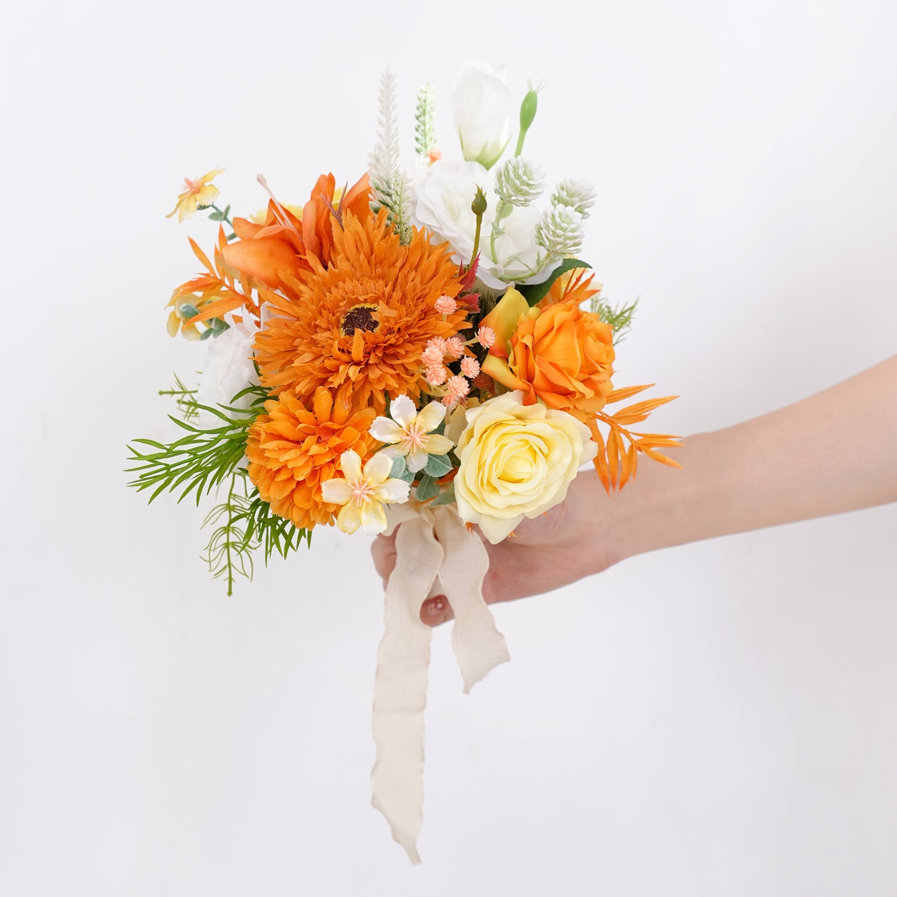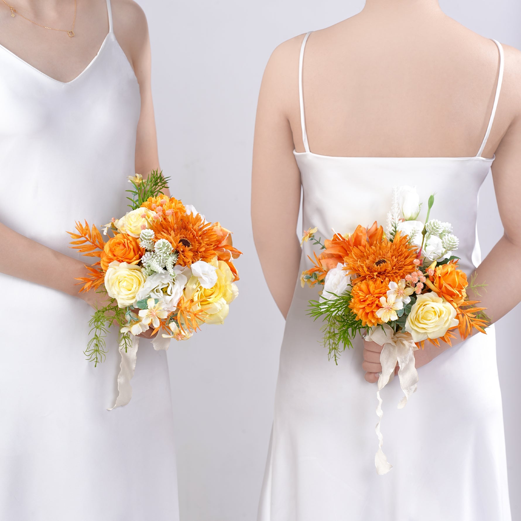 A866504 Orange White Bridesmaid Hand Bouquet Wedding Floral Supplies