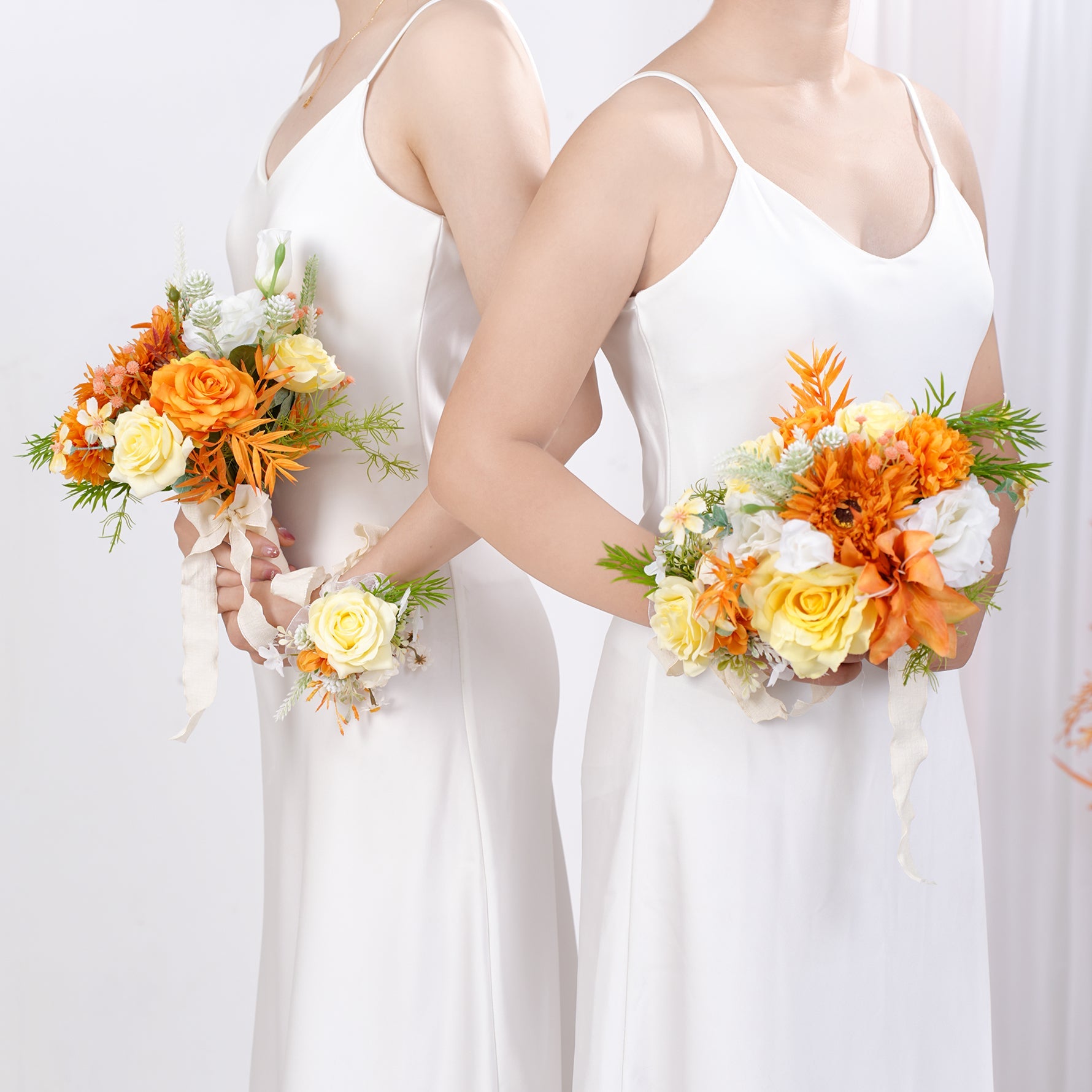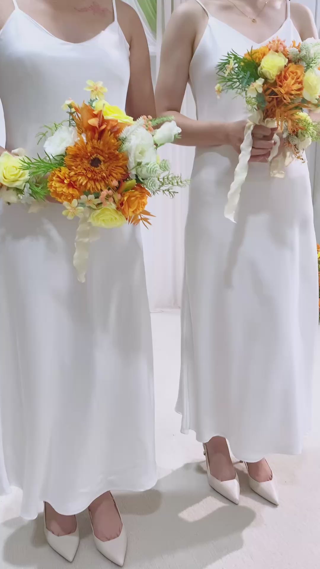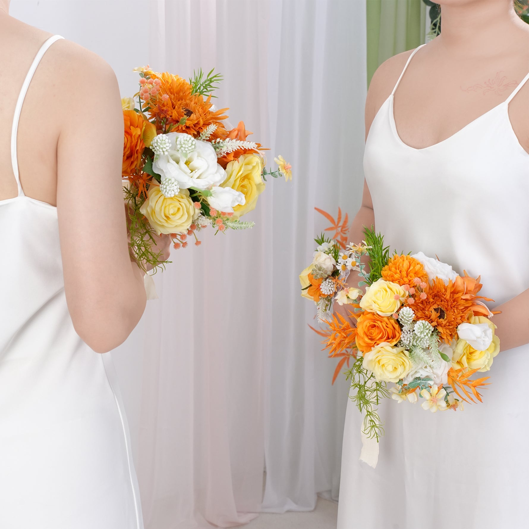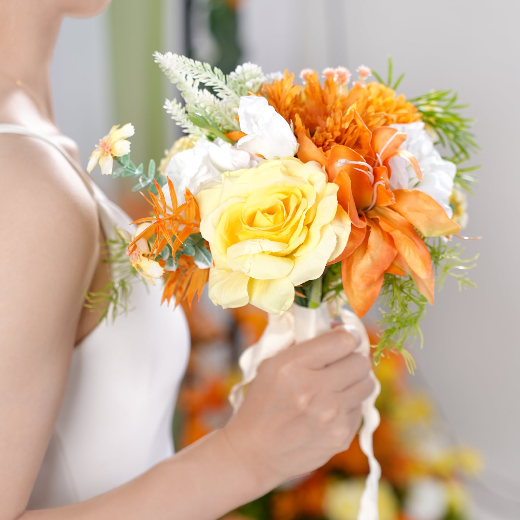 A866504 Orange White Bridesmaid Hand Bouquet Wedding Floral Supplies