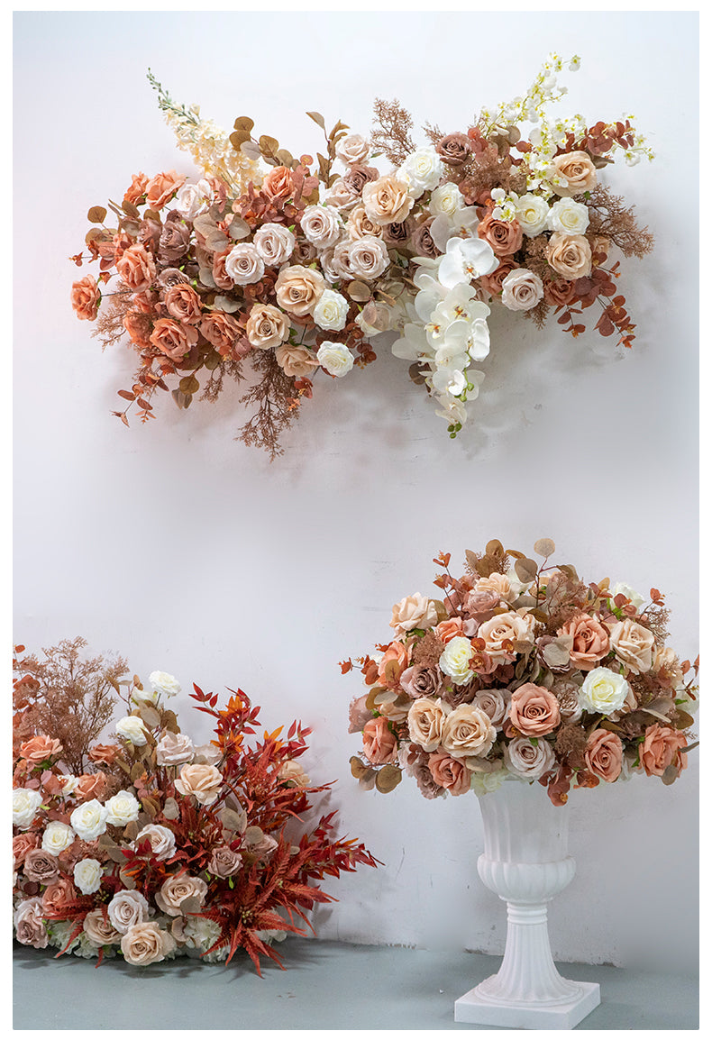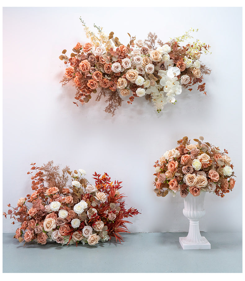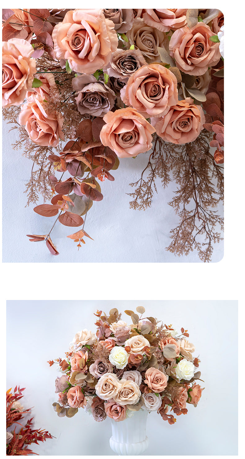 Angela Lore Kafe Udazkeneko Koloreko Eztei Atzeko Dekorazioa Arrosa Orkidea Hostoa Zintzurreko Lore Ilara Antolaketa Mahai Erdiko Pieza Bola Udazkeneko Ekitaldi Propak