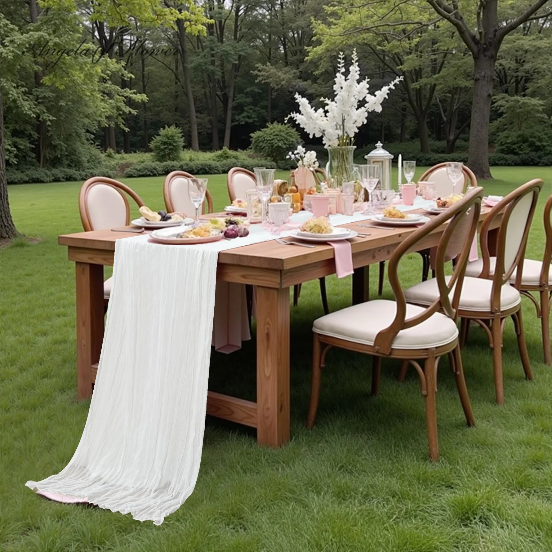 Effect: Tablecloth drapes naturally on all four sides, partially exposing table legs. Suitable for daily use and casual gatherings.