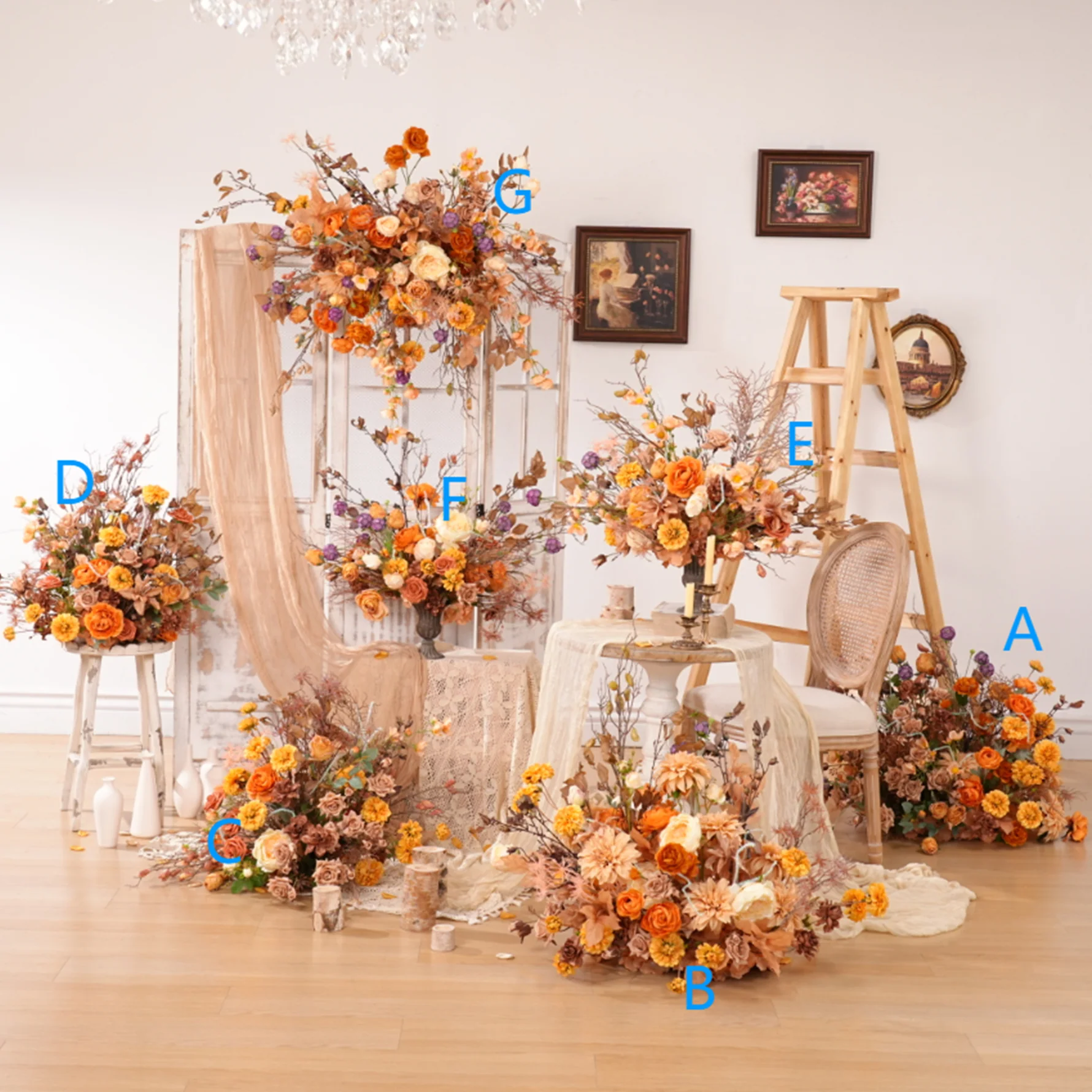 A8959 Autumn Coffee Hang Floral Table Centerpiece Aisle Flower Wedding Event Props
