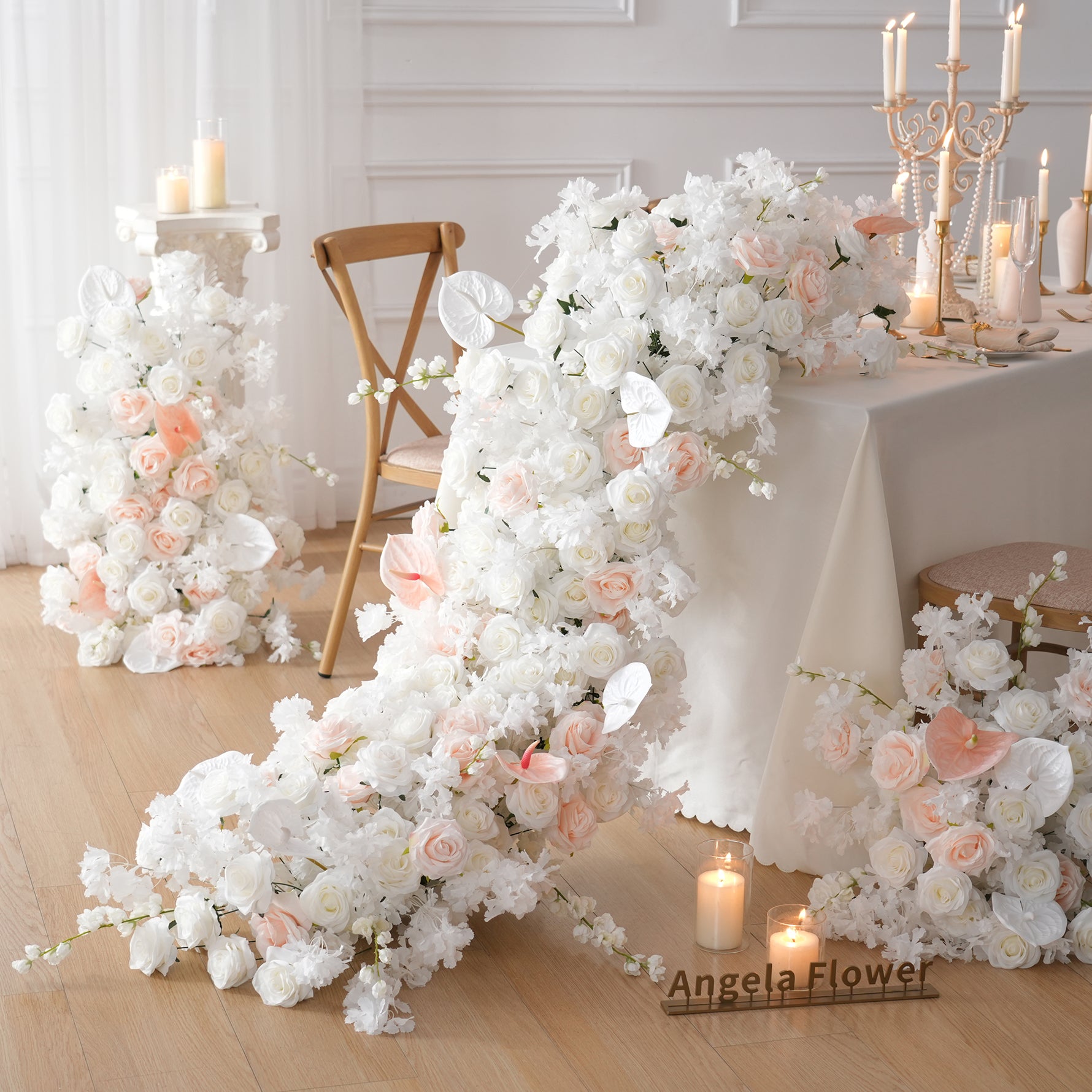 A7508 White Rose Palm Cherry Blossom Artificial Flower Row Wedding Arch Backdrop