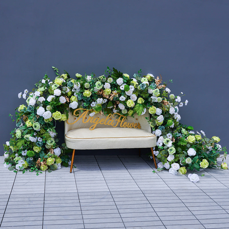 A8704 Champagne White Greenery Leaves Wedding Floral Arrangement