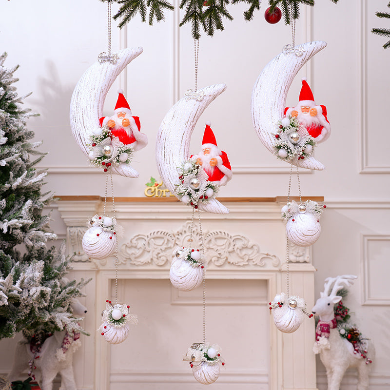 SD0405+SD0415 Christmas Decorations White Moon Santa Hanging Small Balls