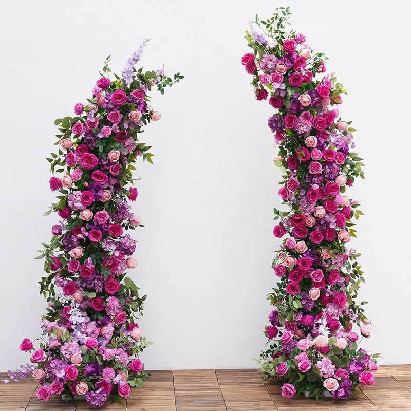 A7879 Purple Hot Pink Rose Flower Runner Decor Wedding Horn Arch Table Flower
