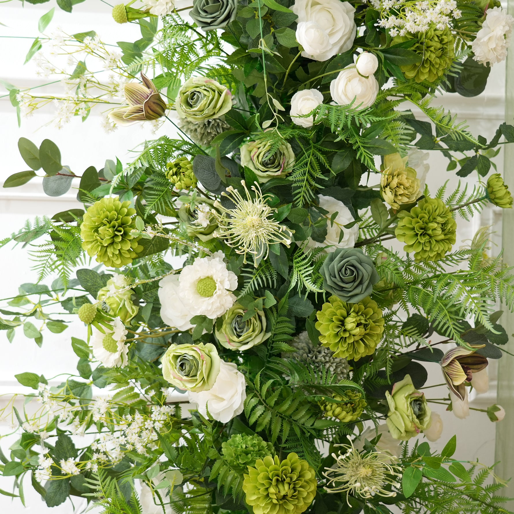 Color Inspiration:Inspired by lush natural greenery, this corner arch decor features lifelike green roses paired with abundant fresh foliage and delicate white blooms. It exudes a fresh, serene romance, ideal for boho and garden weddings. Reusable and maintenance-free, it creates a stunning natural focal point for ceremonies and photos, blending organic elegance with timeless charm.
