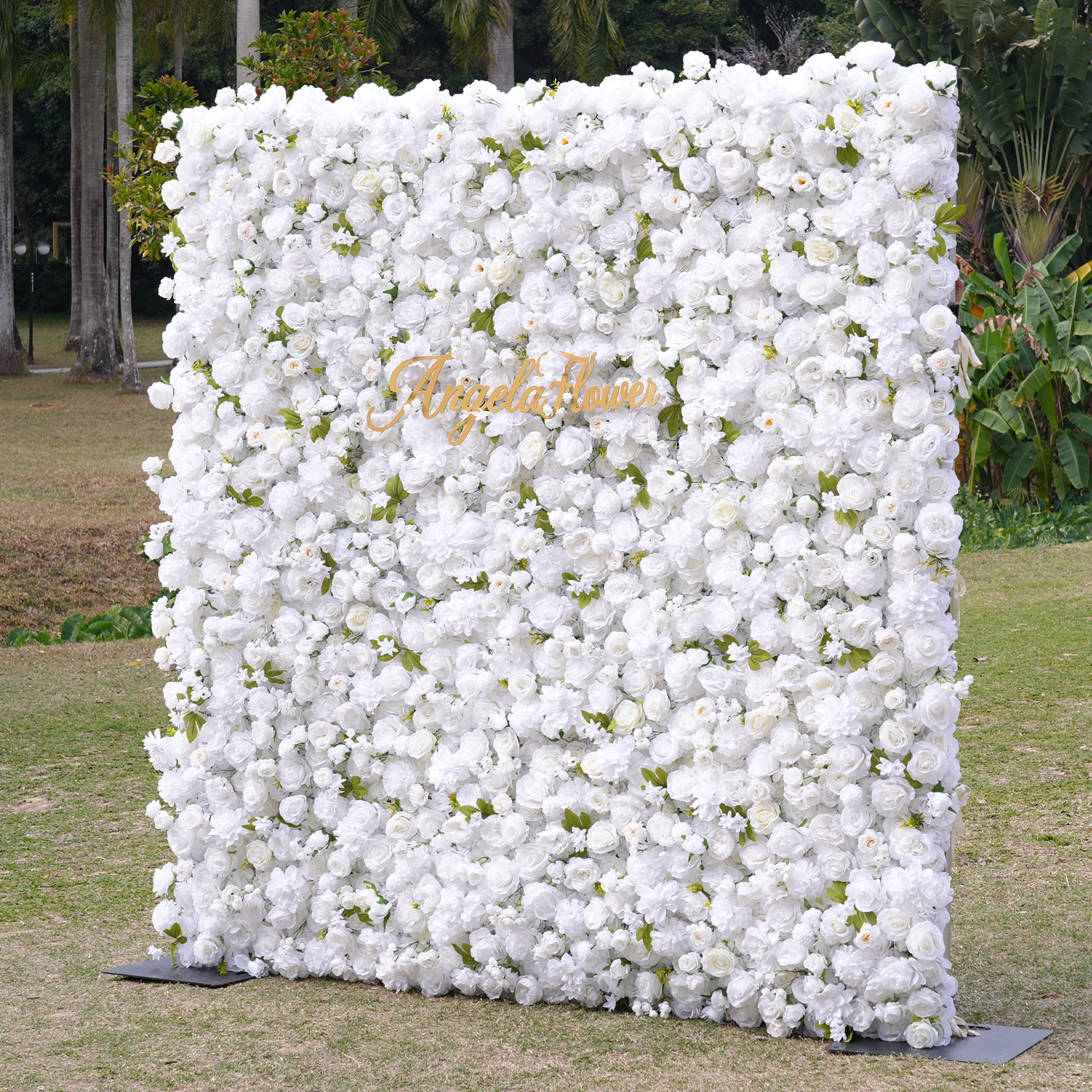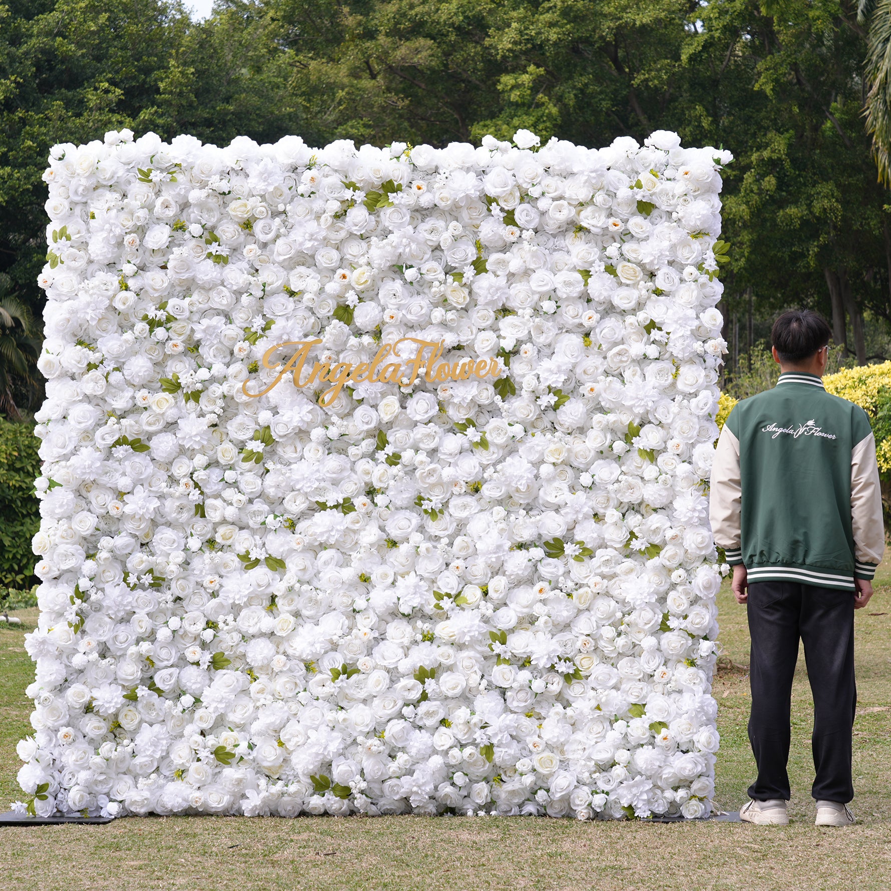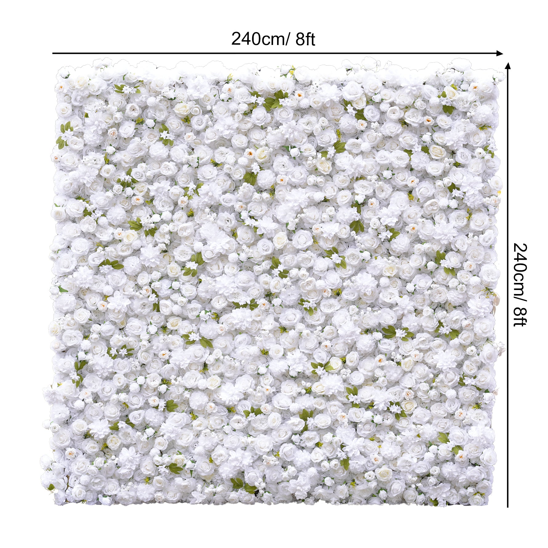 CB342 White Rose Dahlia Flower Wall 5D Rolling Up Curtain Floral Arrangement