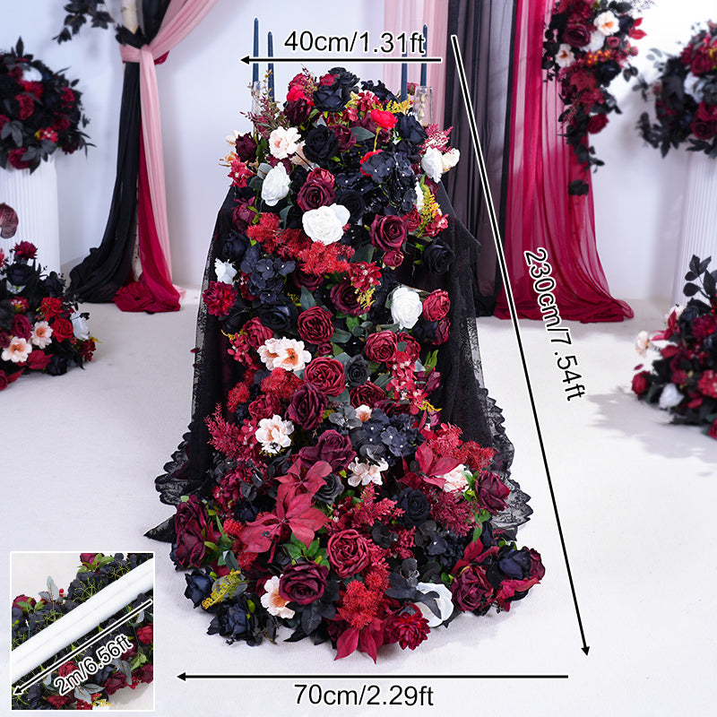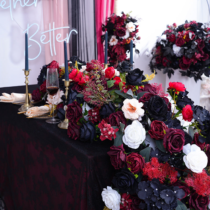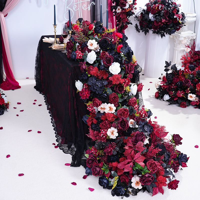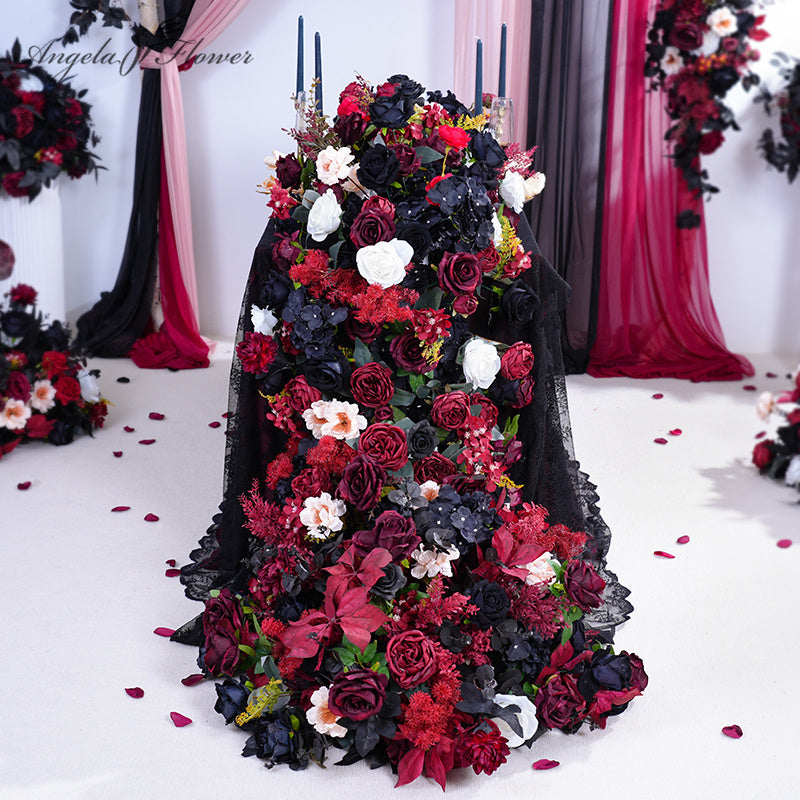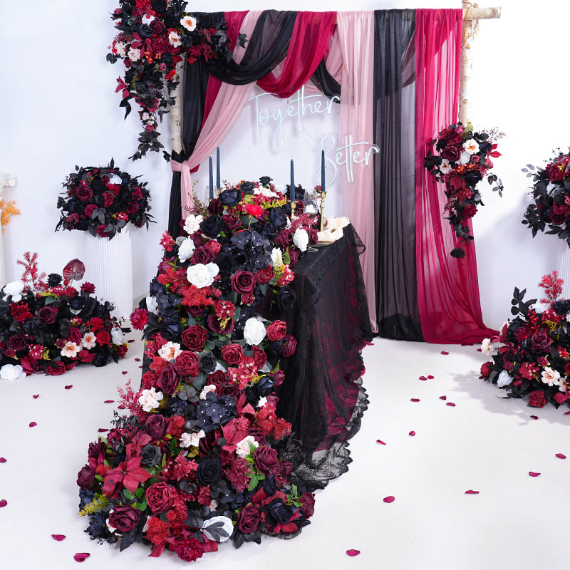 A865417 Black Burgundy Series Table Sofa Runner Flower Wedding Decor Props