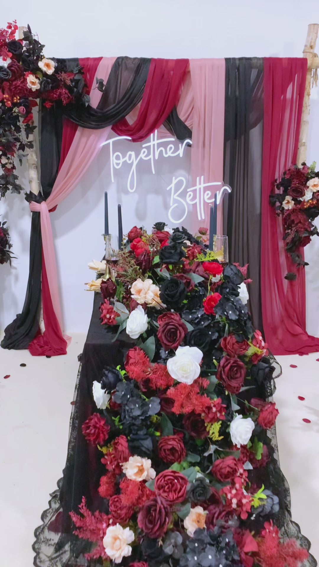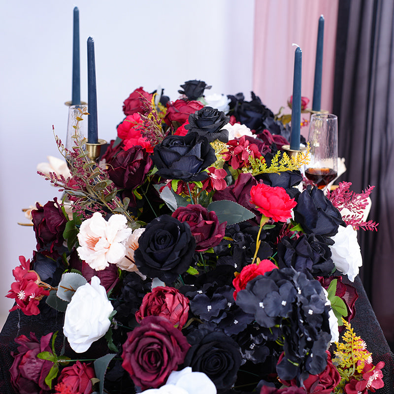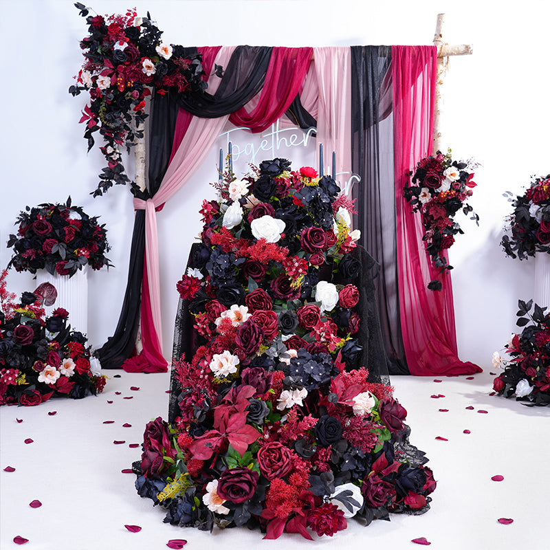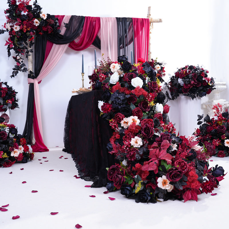 A865417 Black Burgundy Series Table Sofa Runner Flower Wedding Decor Props