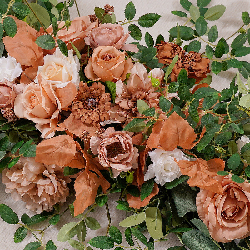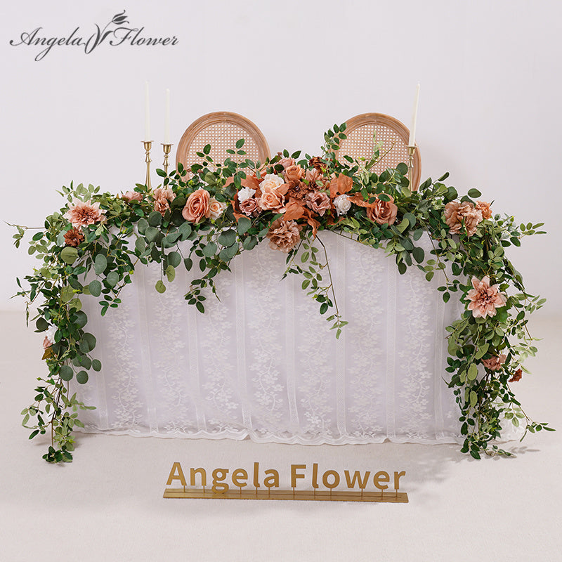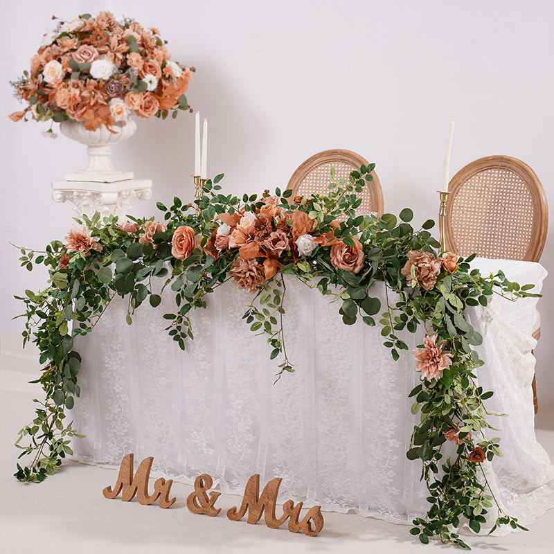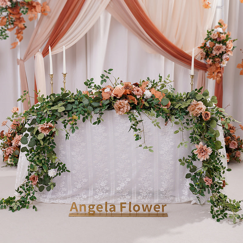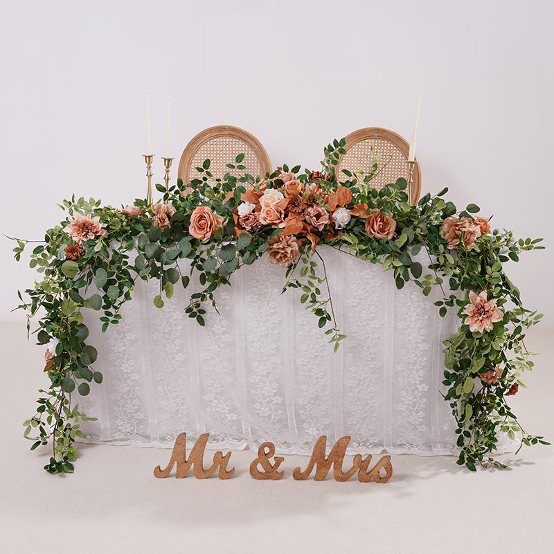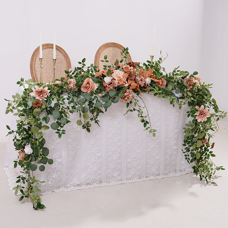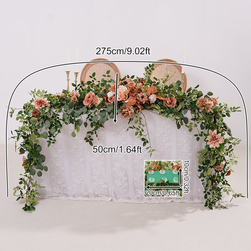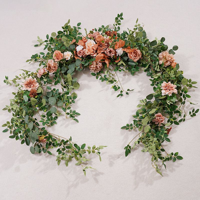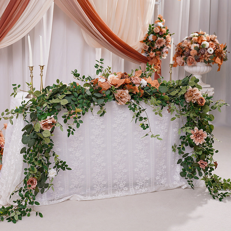 A866415 9.02ft Coffee White Series Rose Green Plant Vine Event Party Table Flower Garlands