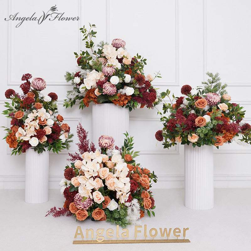 A8737 Coffee Rose Greenery Orchid Table Centerpiece Flower Ball Wedding Reception Floral Arrangement